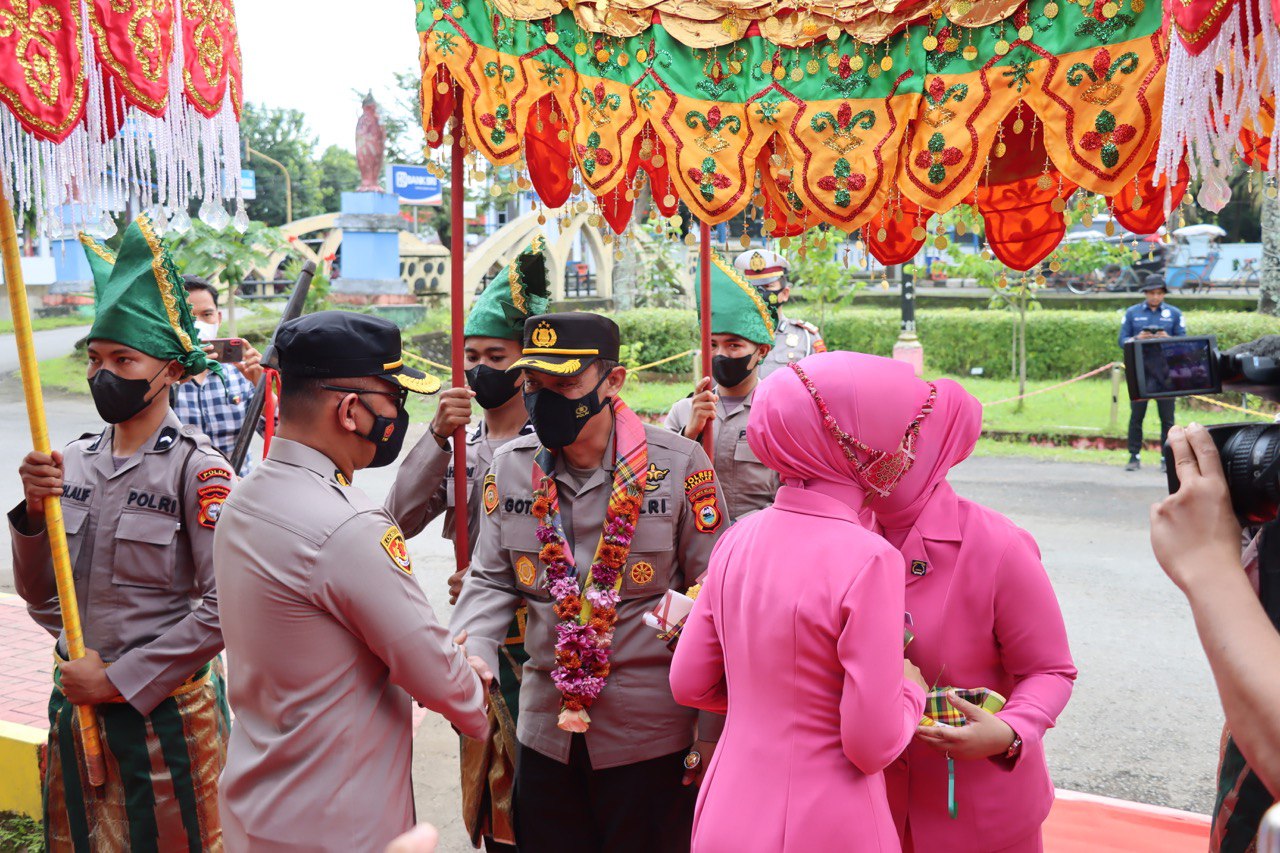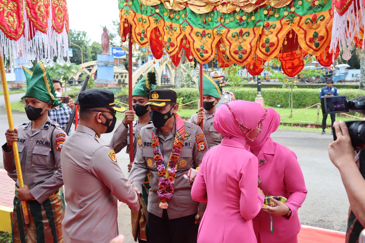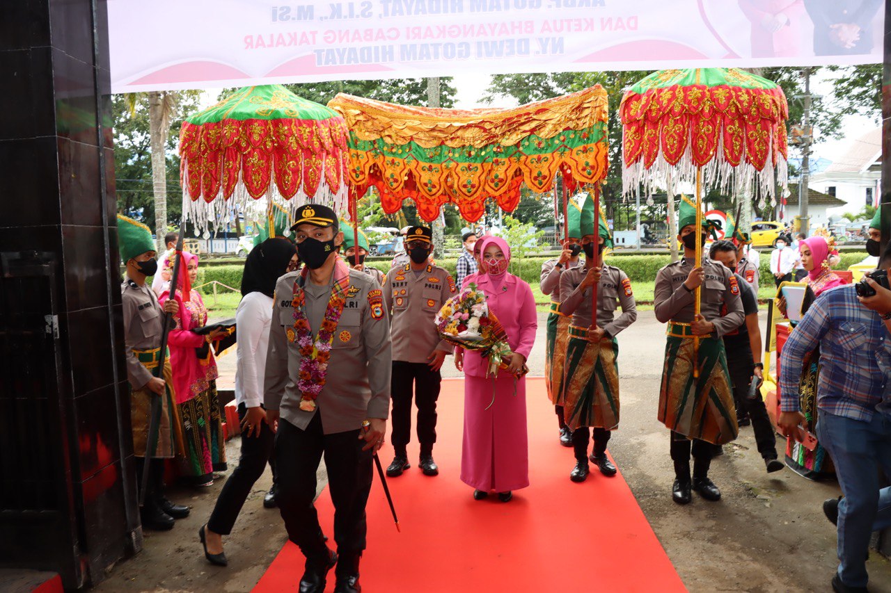 Dengan didampingi oleh AKBP Beny Murjayanto, S.I.K.,M.H yang merupakan Pejabat Kapolres Takalar sebelumnya, AKBP Gotam Hidayat, S.I.K., M.Si bersama dengan Ibu Dewi Gotam Hidayat melangkah memasuki pintu gerbang Mako Polres Takalar dan disambut dengan Tradisi A’ngaru dan Tarian Penjemputan.
