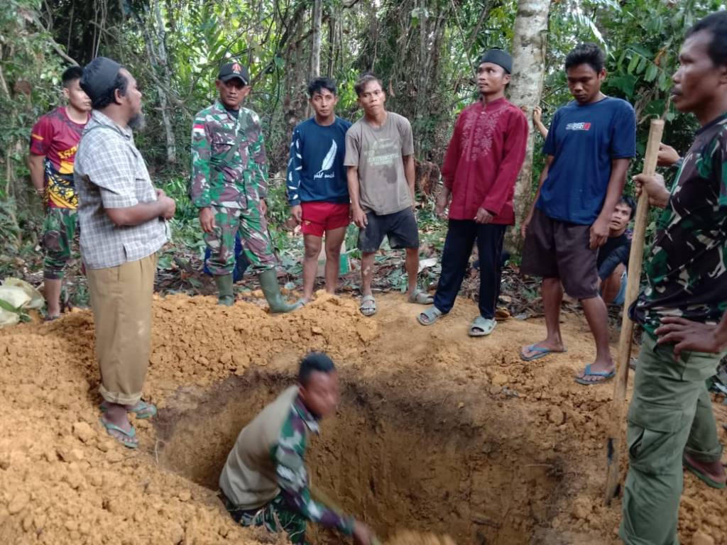 Anggota Satgas Pamtas RI-Malaysia Yonif 144/JY membantu Pemakaman Warga di desa Sei Beruang Kecamatan Sekayam Kabupaten Sanggau Kalbar.