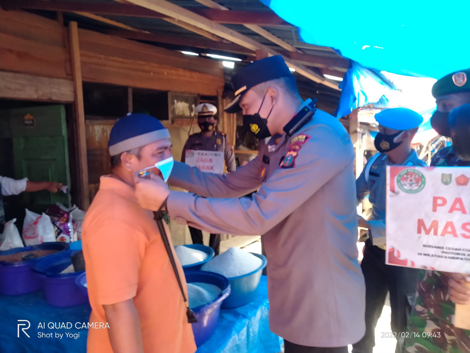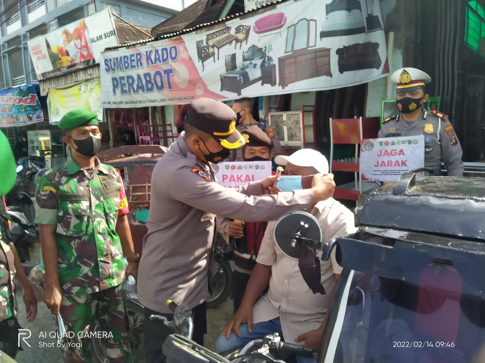 Kapolres Madina AKBP H.M. Reza Chairul A.S, S.I.K, S.H, M.H bersama jajarannya dan personil Koramil 13 Panyabungan membagikan 4000 (Empat Ribu) picis masker kepada para pedagang dan pembeli serta pengunjung uang berada di pusat pasar lama dan pusat pasar baru Panyabungan Kabupaten Mandailing Natal, pada hari Senin pagi sekira pukul 09.00 Wib (14/02/2022)