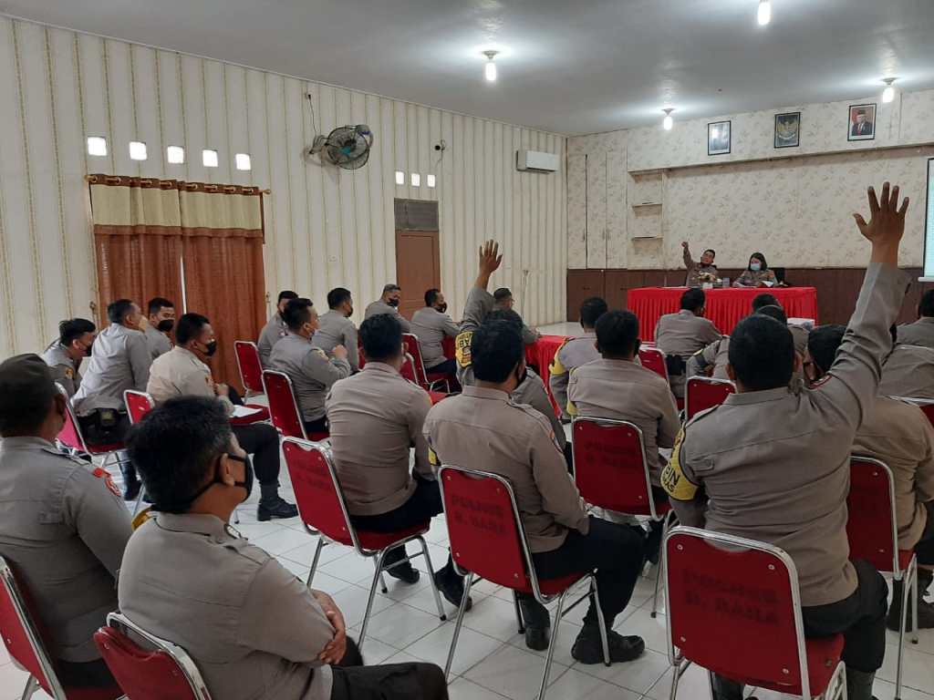 Sat Binmas Polres Batu Bara laksanakan Pencegahan Penyebaran Covid-19 terhadap masyarakat yang terkonirmasi Covid-19 melalui Aplikasi Silacak Polres Batu Bara dalam rangka Analisa Evaluasi giat 3T Bhabinkamtibmas, yang bertempat di Aula Polres Batu Bara, Senin, 14 Februari 2022, sekira Pukul 09.40 Wib.