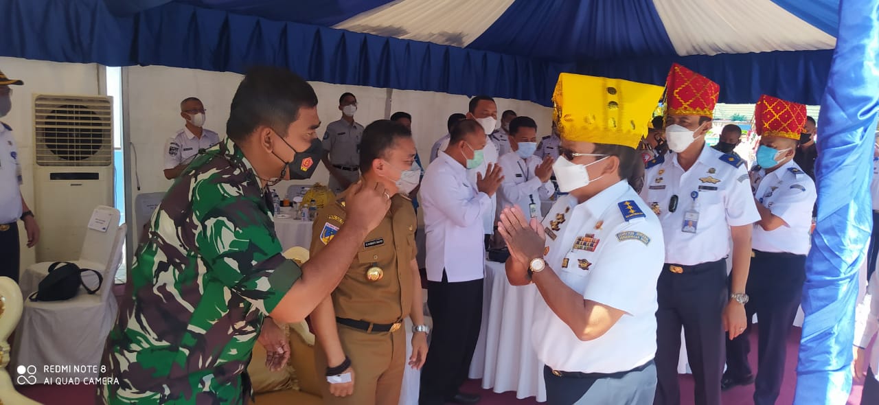 Nampak Komandan Lanal Palu berbincang dengan undangan lain yang hadir sesaat sebelum acara peresmian tersebut dimulai. Diantara pejabat yang terlihat hadir yaitu Gunernur Sulawesi Tengah, Komandan Korem 132/Tdl, Dirjen Perhubuhungan Darat Kementerian Perhubungan Darat Kementerian Perhubungan RI, dan undangan pejabat lain dari Forkopimda Sulawesi Tengah.