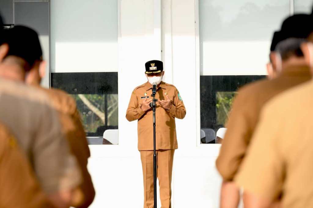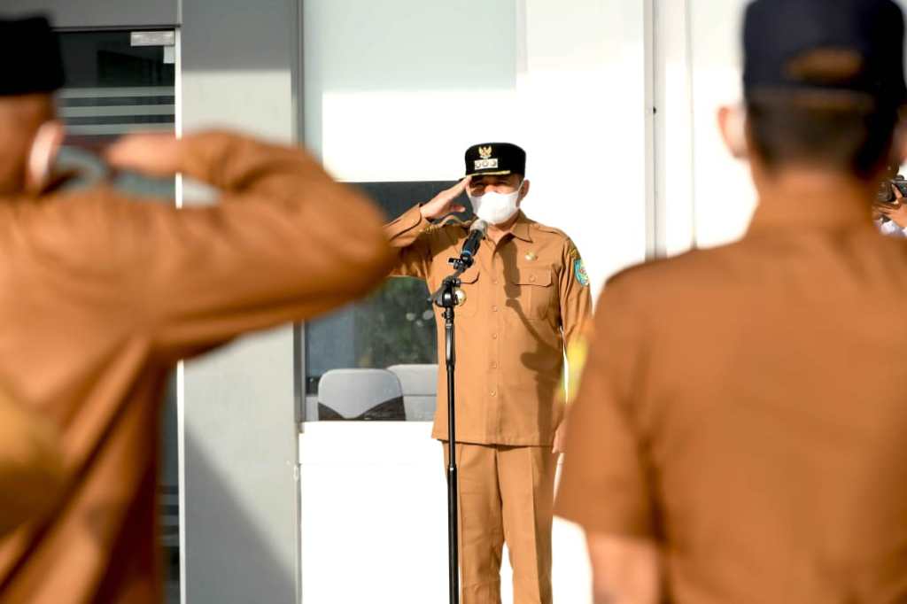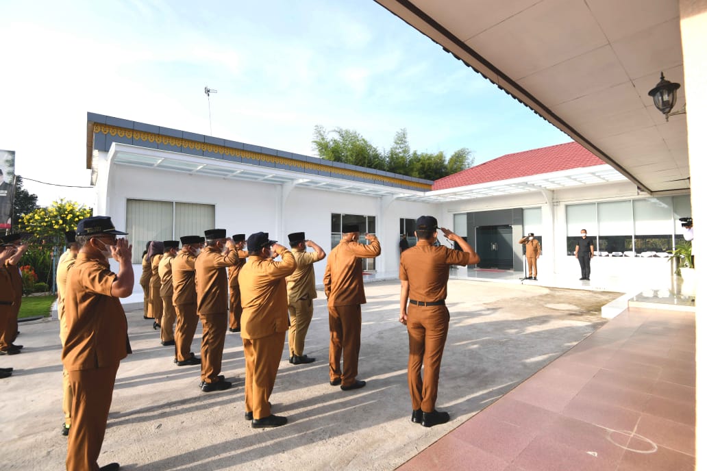 Pemerintah Kabupaten Batu Bara menggelar Apel gabungan Aparatur Sipil Negara (ASN), di Halaman Rumah Dinas Bupati, Kecamatan Sei Suka, pada Senin (14/02/2022). Sebagai Pembina Apel gabungan, Bupati Zahir mengingatkan pada seluruh elemen pemerintahan dan masyarakat, untuk ikut melancarkan program vaksinasi Booster demi mewaspadai penyebaran virus Covid-19, khususnya varian terbaru, yakni Omicron.