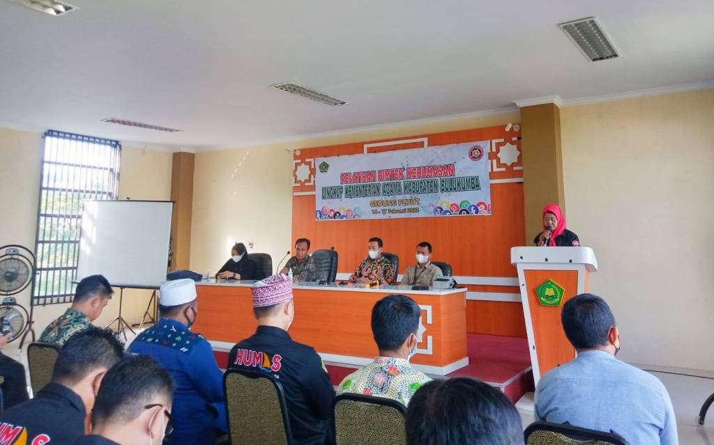Kepala Kantor Kemenag (Kemenag) Kab. Bululumba, Muh Yunus, dan Humas Kantor Kementerian Agama Provinsi Sulawesi Selatan, Mawardi Siradj, menjadi pemateri pada Diklat Kehumasan di lingkungan Kemenag Bulukumba, yang dilaksanakan di Gedung PLHUT, Bulukumba. Rabu, (16/2/2022).