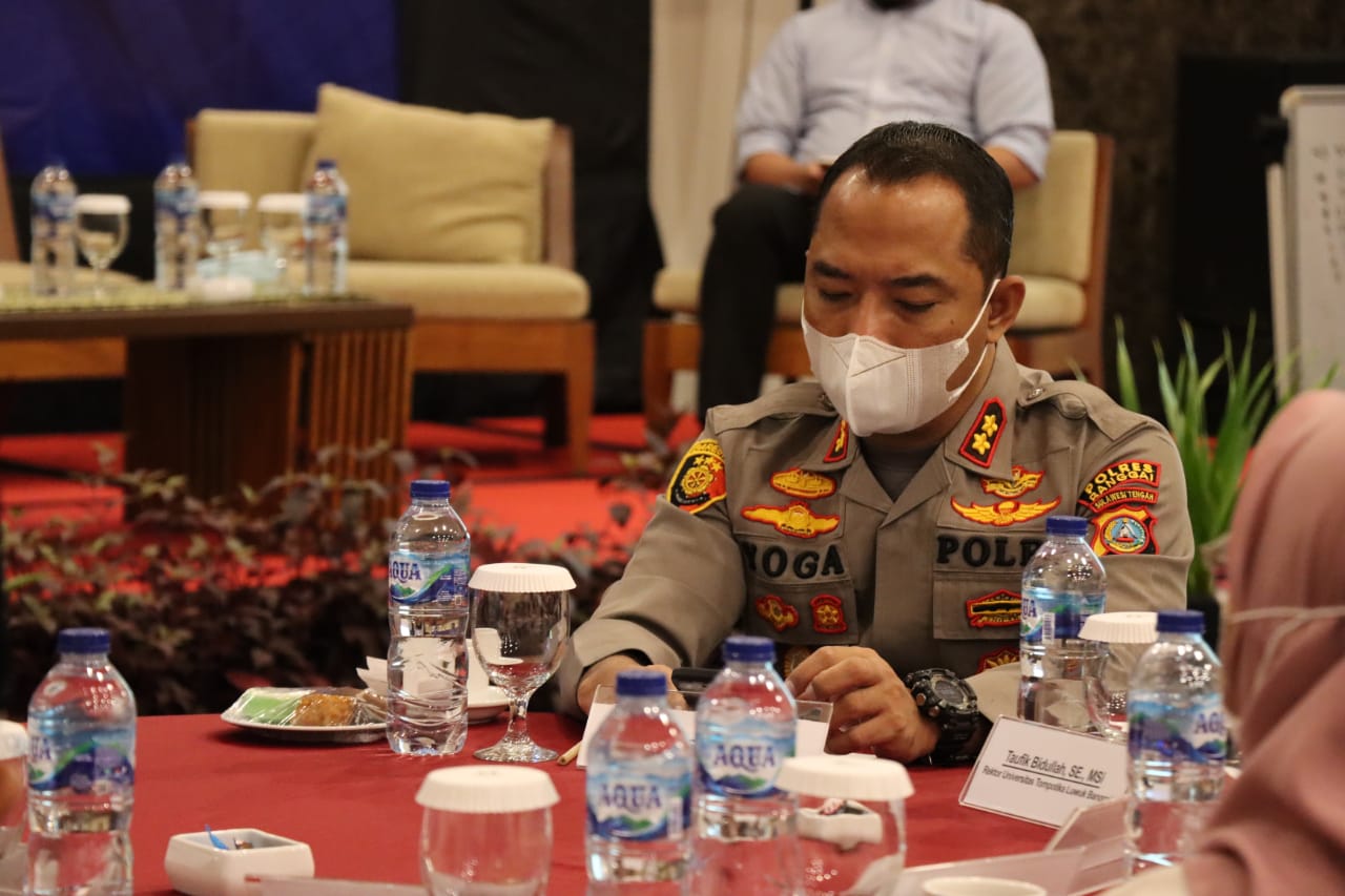 Kapolres Banggai AKBP Yoga Priyahutama SH, SIK, MH, mengikuti seminar nasional bertajuk meneropong tahun 2022 tentang peran negara dan tata kelola SDA untuk kesejahteraan warga Kabupaten Banggai, Sulteng, Kamis (17/2/2022).
