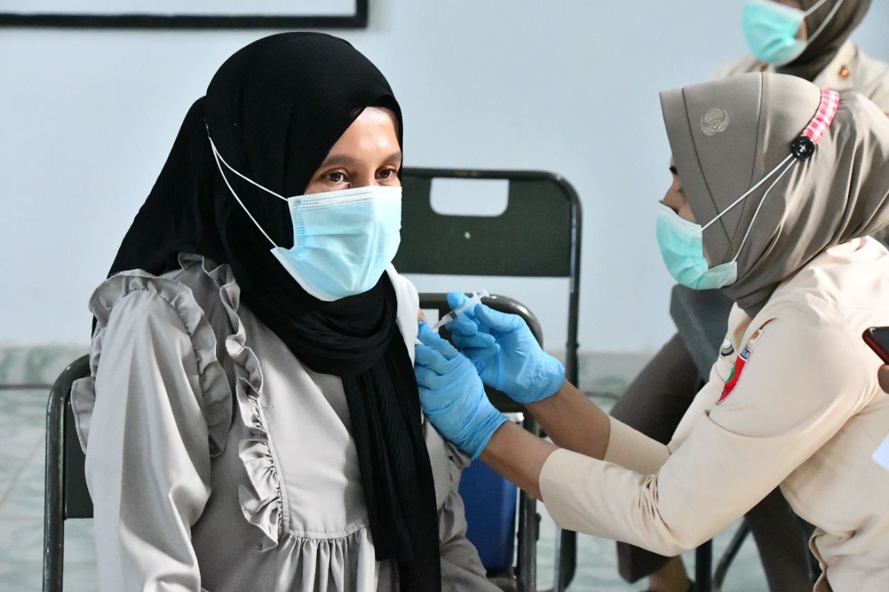 Kegiatan pemberian vaksinasi ini dilaksanakan dengan mematuhi protokol kesehatan.