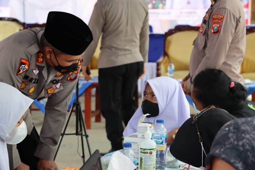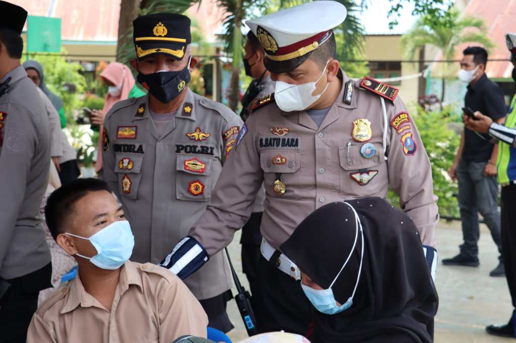 “Untuk mengisi waktu dan menghibur serta menghilangkan rasa kwartir dan takut kepada para pelajar yang akan di Vaksin, usai giat zoom meeting saya hampiri mereka , kemudian berkenalan dan berkomunikasi dengan para pelajar, 90 persen pelajar berkata “disuntik sakit pak Kapolres, kata mereka, khususnya para siswi yang umumnya rasa takutnya lebih tinggi, untuk mengimbangi dan menghilangkan rasa takut tersebut saya pun berkata “Saat Mau Disuntik, Ga Usah Dilihat Ya Nak” ucap AKBP H.M. Reza Chairul, A.S, S.I.K, S.H, M.H kepada para pelajar yang hendak divaksin.