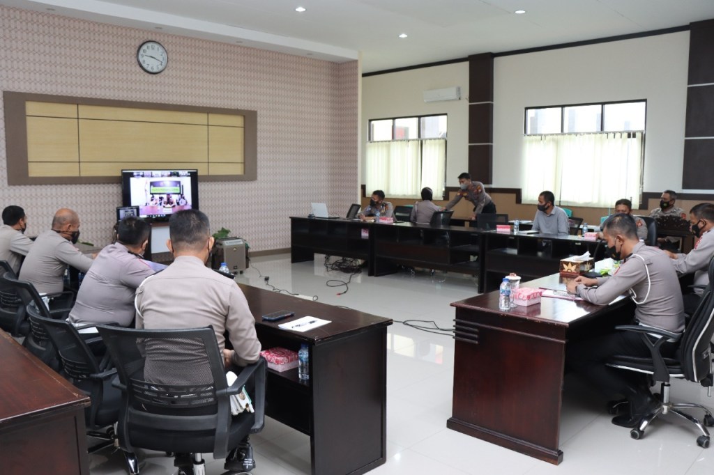 Kegiatan yang digelar secara virtual melalui video conference itu dipimpin Wakapolda Sulteng Brigjen Pol Hery Santoso didampingi Irwasda Polda Sulteng Kombes Pol Asep Adhiatma, Dirlantas Polda Sulteng Kombes Pol Kingkin Winisuda, Pejabat Utama (PJU) Polda Sulteng serta para peserta Latpraops Keselamatan Tinombala 2022 Polres jajaran.