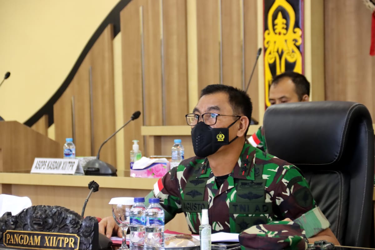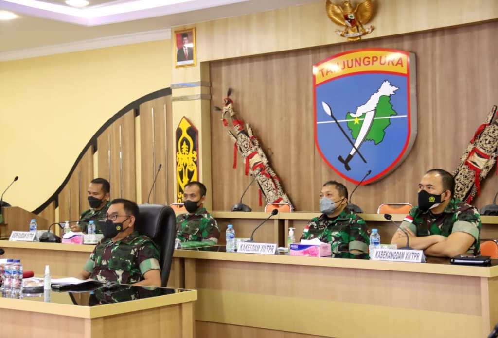 Panglima Kodam XII/Tanjungpura, Mayjen TNI Sulaiman Agusto, S.I.P., M.M., mengikuti Rapat Koordinasi Nasional (Rakornas) Penanggulangan Bencana 2022 secara virtual dari Ruang Rapat Puskodalopsdam XII/Tpr.