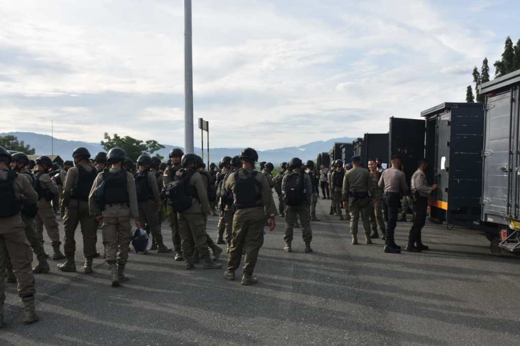 Setelah melakukan pengecekan kekuatan personil dan perlengkapan, mereka langsung menerima pengarahan dari Kapolda Sulteng Irjen Pol. Rudy Sufahriadi di Aula Torabelo Polres Palu.