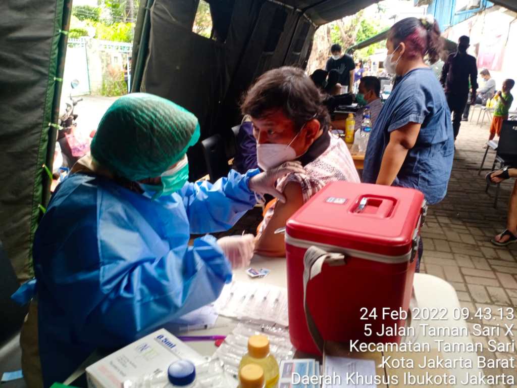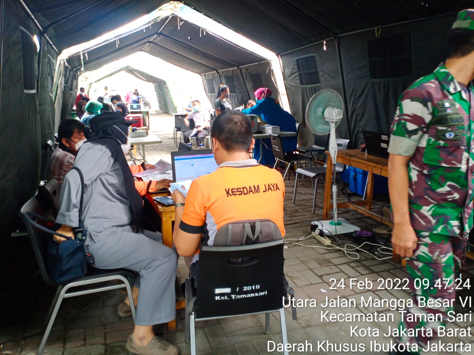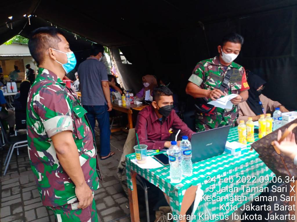“Nakes TNI dari Kesdam Jaya mulai hari ini, Kamis 24 Februari 2022 akan berkolaborasi dengan Nakes Puskesmas Tamansari hingga tanggal 28 Februari 2022.”ungkap Danramil Mayor Galib.