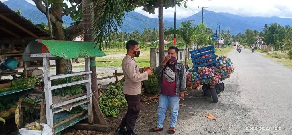 Seperti patroli yang dilaksanakan pada Kamis (24/2/2022) Polsek Bunta menyambangi warga guna menyampaikan pesan kamtibmas dan protokol kesehatan Covid-19.
