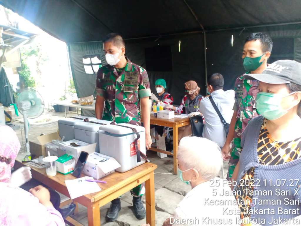 Kodim 0503/JB yang di laksanakan Koramil 01/Tamansari di halaman stadion sepak bola Tamansari Jalan Mangga Besar VI Utara, Rt. 008/01, Kelurahan Tamansari, Kecamatan Tamansari, Jakarta Barat, Jum’at, 25 Februari 2022.