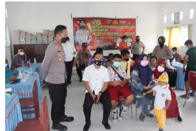 Kapolres Parimo mengatakan kegiatan vaksinasi anak tersebut digelar secara serentak di seluruh Kab.Parimo dalam rangka program pemerintah yaitu percepatan vaksinasi anak usia 6-11 tahun.