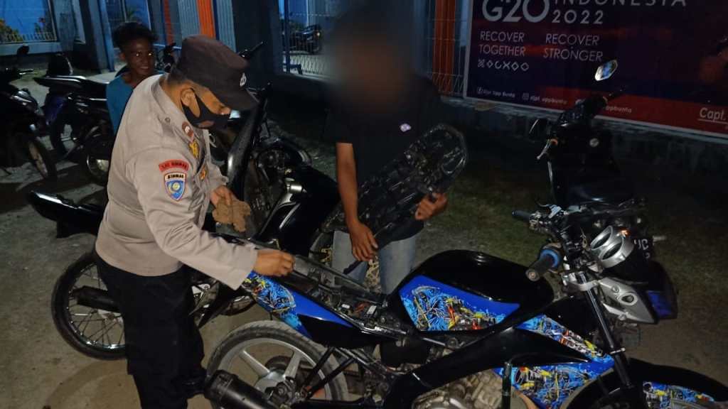 Selain membubarkan pesta miras, petugas juga mengamankan dua unit sepeda motor yang menggunakan knalpot brong atau racing.