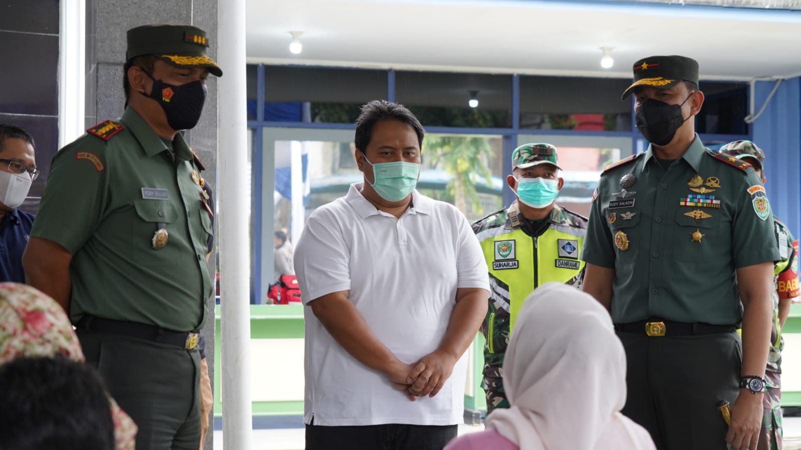 Danrem 061 suryakancana Brigjen TNI Rudy Saladin MA dengan didampingi oleh komandan kodim 0606/kota Bogor kolonel lnf Robby Bulan melaksanakan peninjauan kegiatan vaksinasi Cinta Tanah Air Cegah Covid-19 yang diselenggarakan oleh kodim 0606/kota bogor bersama PDAM kota Bogor di kantor PDAM jalan. Siliwangi no.121 Kel. Sukasari Kec. Bogor Timur Kota Bogor, Senin (28/2).