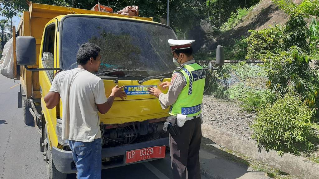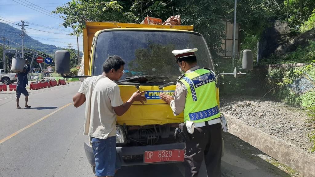 Aipda Saparuddin menambahkan melalui stiker ini merupakan bentuk sosialisasi dijalan dalam upaya pengendalian penyebaran covid-19 yang sampai saat ini masih situasi pandemi.
