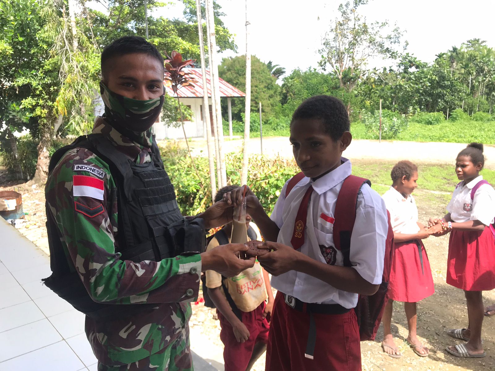 Dijelaskannya, dalam upaya mewujudkan derajat kesehatan anak-anak SD di Perbatasan paling timur RI-PNG, anggota Satgas Pos Sawiyatami memberikan susu secara gratis ke sekolah dasar Inpres Sawiyatami di wilayah setempat.