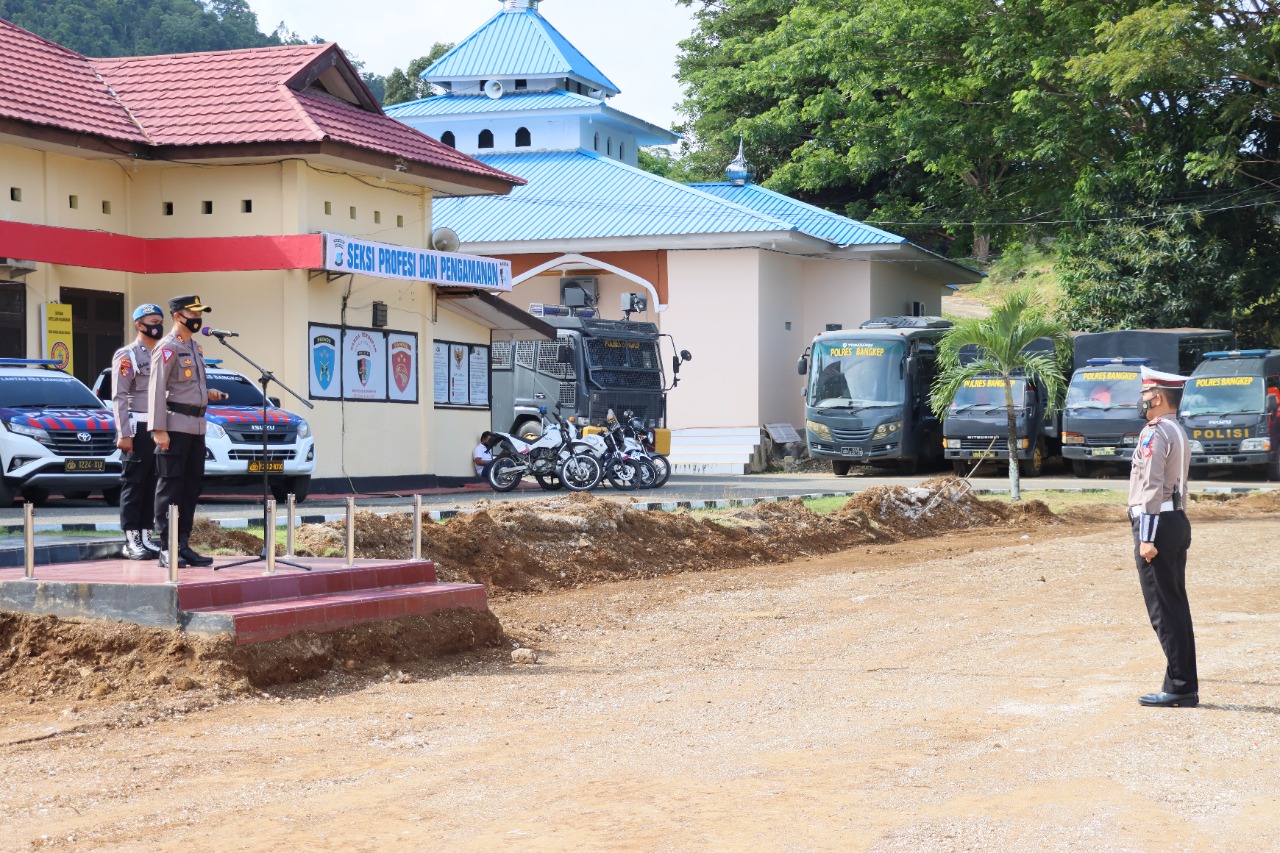 Sebagai pemimpin apel, Kapolres Bangkep Akbp Bambang Herkamto S.H menyampaikan amanat Kapolda Sulteng Irjen Pol. Drs. Rudy Sufahriadi kepada peserta apel antara lain laksanakan kegiatan ini dengan tulus dan ikhlas serta sebagai ladang amal dan ibadah . Deteksi dini terhadap seluruh kerawanan tarkait kamseltibcarlantas dan penyebaran covid 19 agar pelaksanaan operasi bisa optimal dan tepat sasaran . Laksanakan kegiatan edukasi kamseltibcar lantas kepada masyarakat secara intens khususnya kepada kaum melenial sehinggga dapat menekan angka pelanggaran dan laka lantas