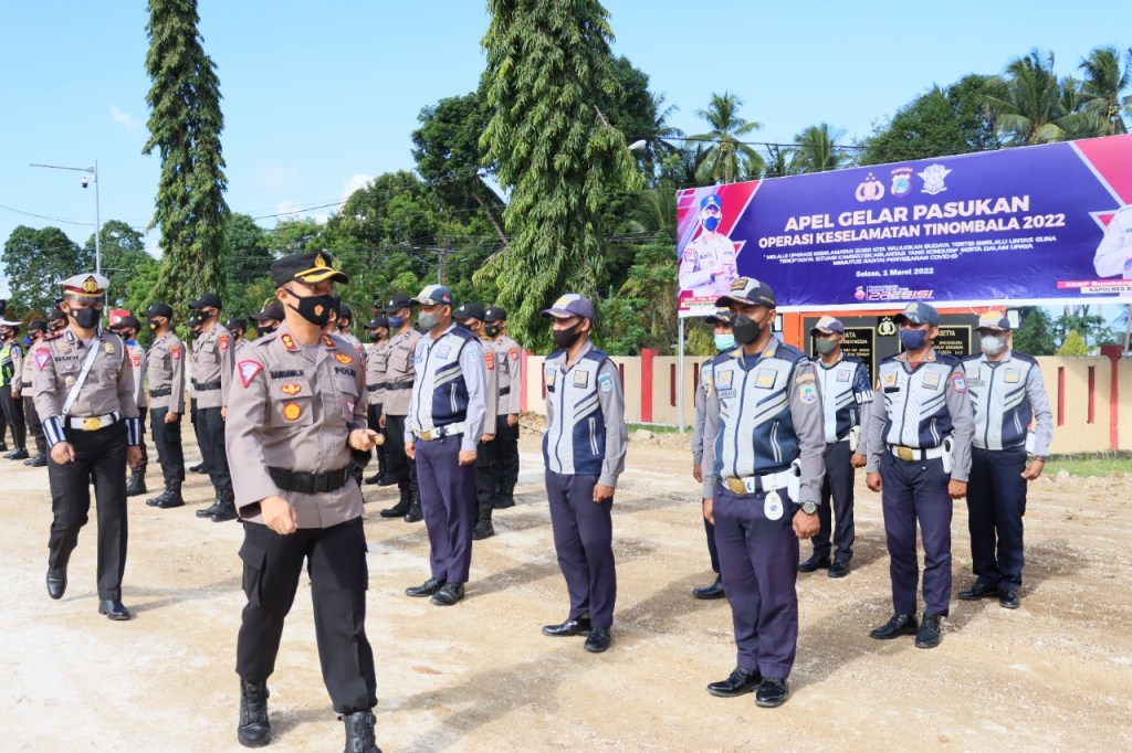 Bertempat di lapangan Mako Polres Bangkep telah dilaksanakan Apel gelar pasukan Operasi Keselamatan Tinombala 2022 dengan tema Melalui operasi keselamatan 2022 kita wujudkan budaya tertib berlalu lintas guna terciptanya Sitkamseltibcarlantas yang kondusif serta dalam upaya memutus rantai penyebaran covid 19. Selasa (01/03/2022) .