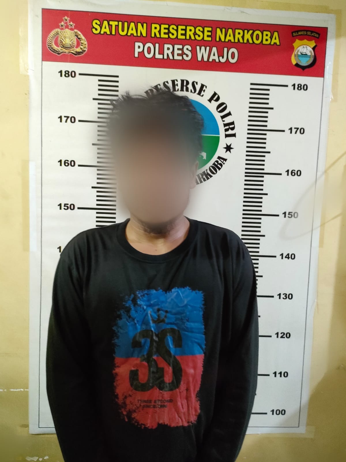 melalui serangkaian tindakan penyelidikan lelaki IR diamankan di Kec. Majauleng Kab. Wajo bersama barang bukti dalam penguasaannya berupa 8 (delapan) schet kristal bening diduga narkotika jenis shabu, 20 (dua puluh) sachet kosong dan uang tunai sejumlah Rp. 550.000 yang diduga sebagai hasil penjualan.