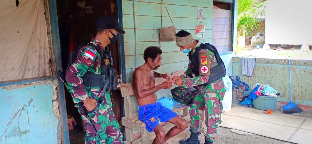 Tingkatkan kepedulian terhadap kesehatan tubuh terutama masyarakat yang usia rentan seperti lansia, ibu hamil, balita dan anak-anak di perbatasan, personel Pos Mosso Satgas Pamtas RI-PNG Yonif 711/Rks menggelar pengobatan gratis di kampung Mosso, Kecamatan Muara Tami, Kota Jayapura.