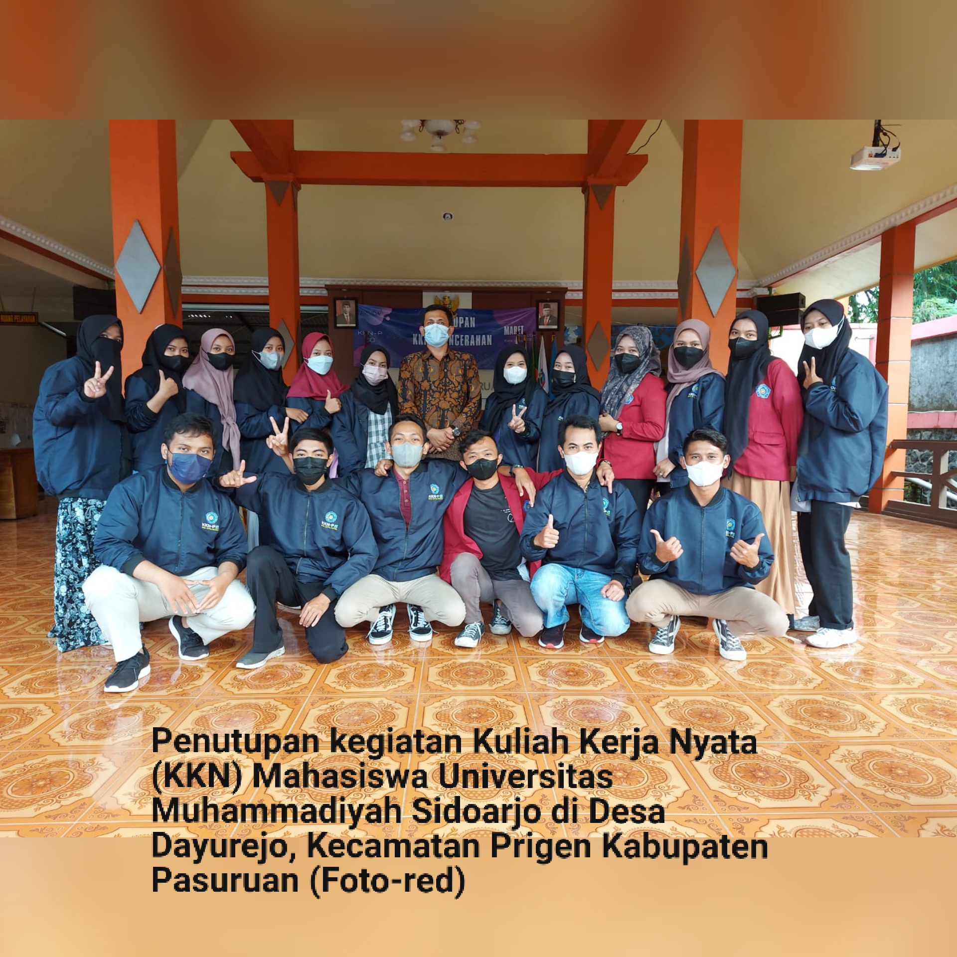 Penutupan kegiatan Kuliah Kerja Nyata (KKN) Mahasiswa Universitas Muhammadiyah Sidoarjo di Desa Dayurejo, Kecamatan Prigen Kabupaten Pasuruan dilaksanakan pada hari Kamis (03/03/2022) yang bertempat di Balai Desa Gutean dan berlangsung dengan lancar.