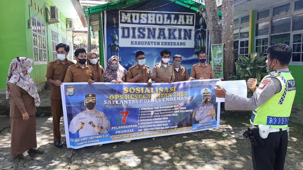 Satuan Lalu Lintas Polres Enrekang melaksanakan sosialisasi Tertib Berlalu Lintas kepada Para Pengendara Dalam Rangka Ops Keselamatan 2022, di Kantor Dinas Peternakan dan Perikanan Kabupaten Enrekang, Jumat (04/03/2022).