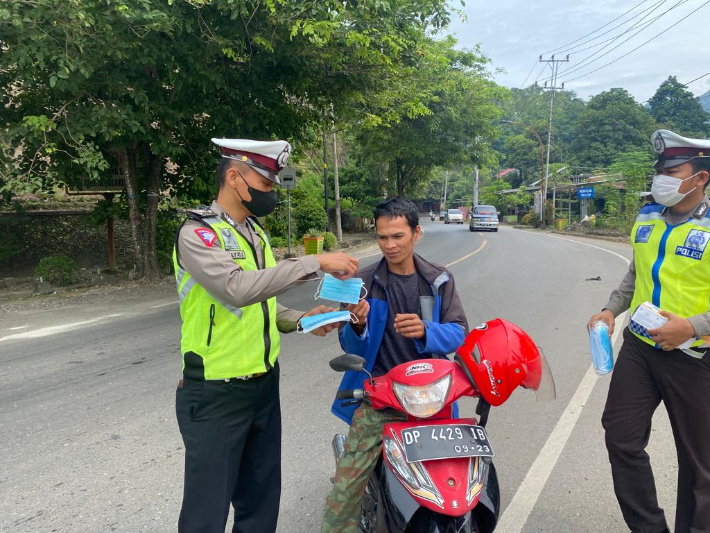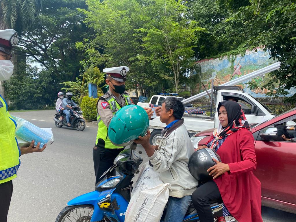 “Untuk pengendara kendaraan, selain tertib protokol kesehatan juga agar tetap tertib lalu lintas, patuhi rambu-rambu lalu lintas, dan hati-hati dijalan. Semoga pandemi Covid-19 ini segera berhenti,”tutupnya