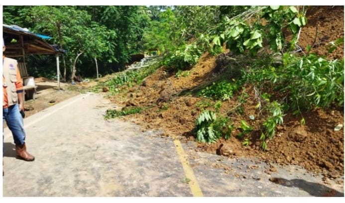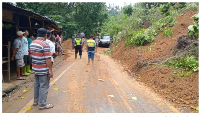 Bencana alam tanah longsor melanda jalan Trans Desa Lobong Kecamatan Passi Barat yang mengakibatkan material longsor menghalangi jalan pada Minggu (6/3/2022) sekitar pukul 5 pagi.