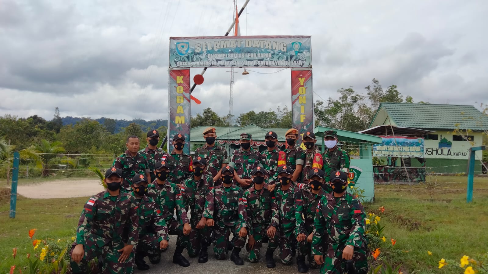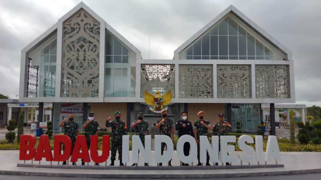 Anggota Satgas Pamtas RI-Malaysia Yonif 144/JY Menerima kunjungan lanjutan dari Satgas pengganti Yon Armed 19/105 TRK DAM XIII/MDK di mentari Kecamatan Badau Kabupaten Kapuas Hulu Kalbar.(6/3/2022)