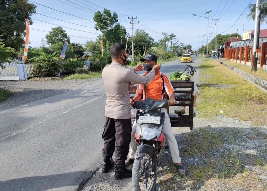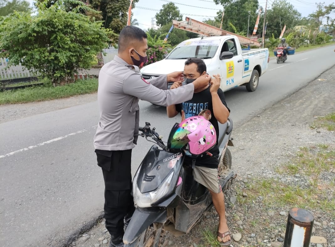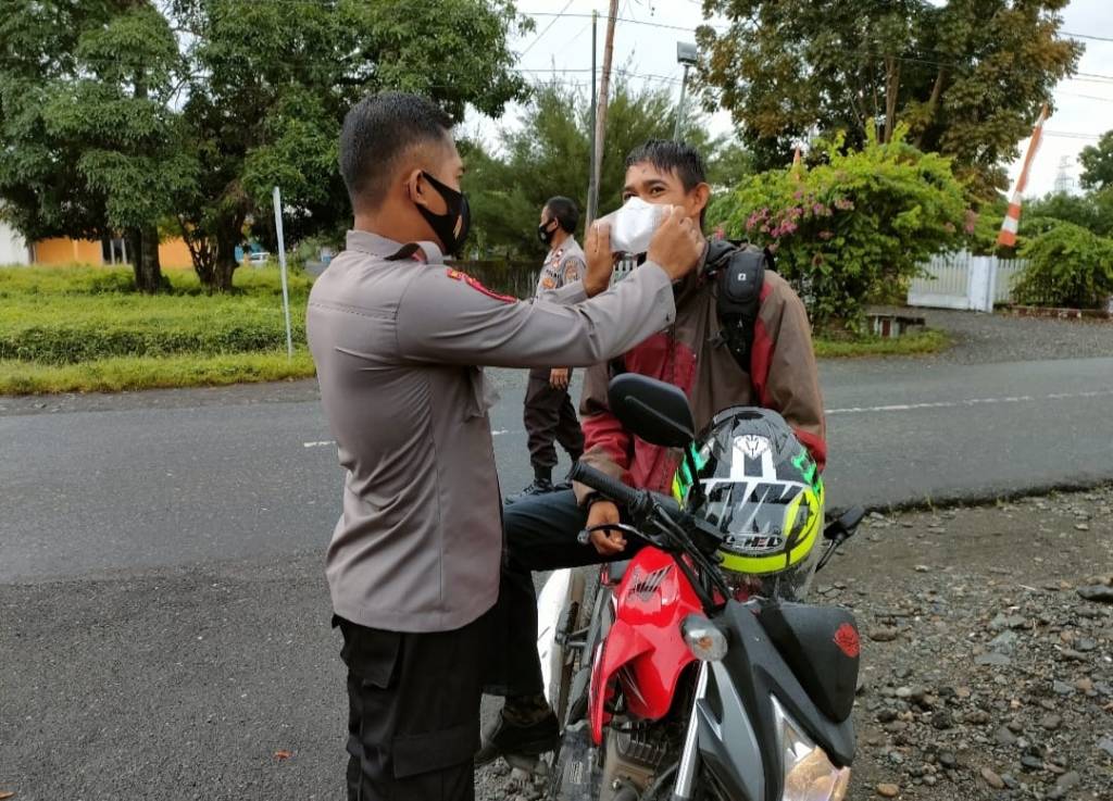 “Pengendara yang ditemukan tidak menggunakan masker kemudian dibagikan masker agar terlindung dari penyebaran Covid-19,” ungkap Kapolsek Toili Iptu Tonny SH.