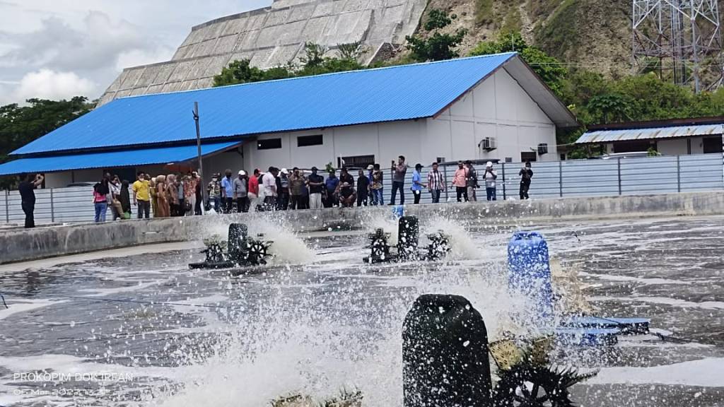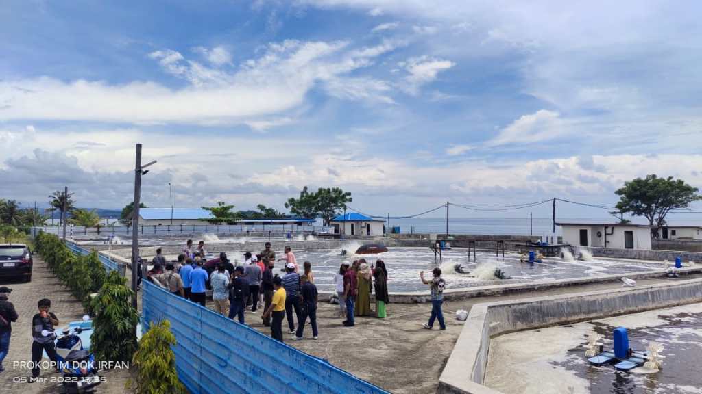 Usai pertemuan, Bupati dan rombongan meninjau beberapa petak tambak di lokasi perusahaan.