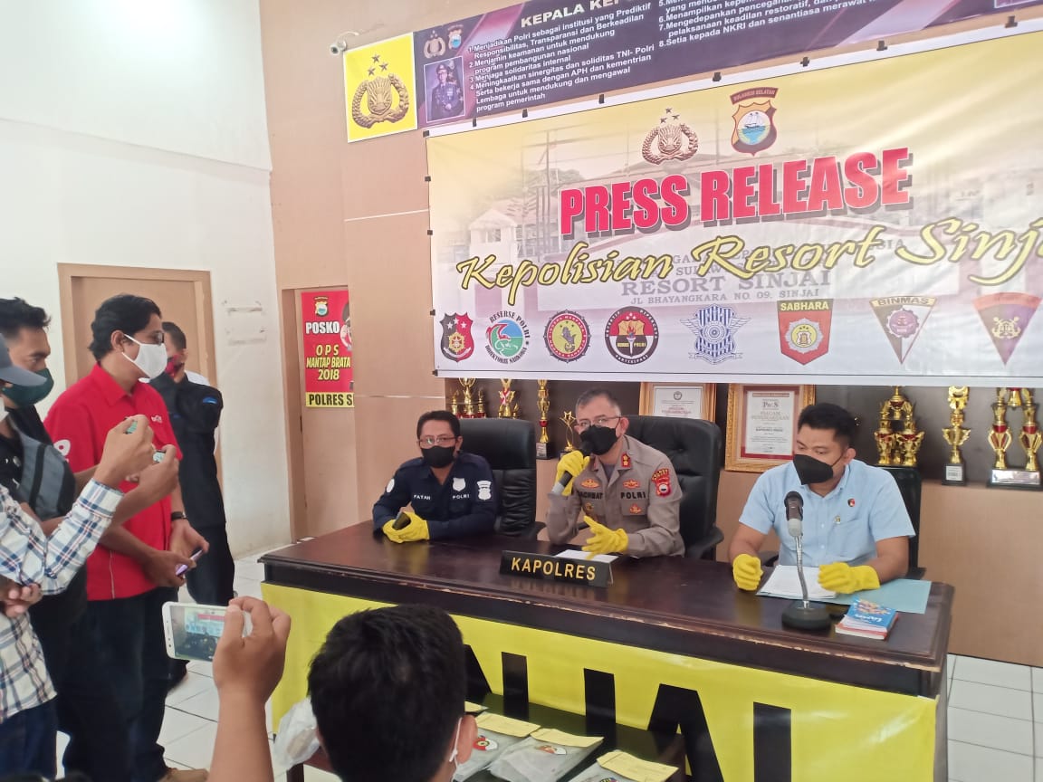 Press Release bertempat dilobby Pratisara Wirya Mapolres Sinjai yang dihadiri anggota Sat Reskrim serta beberapa awak media.