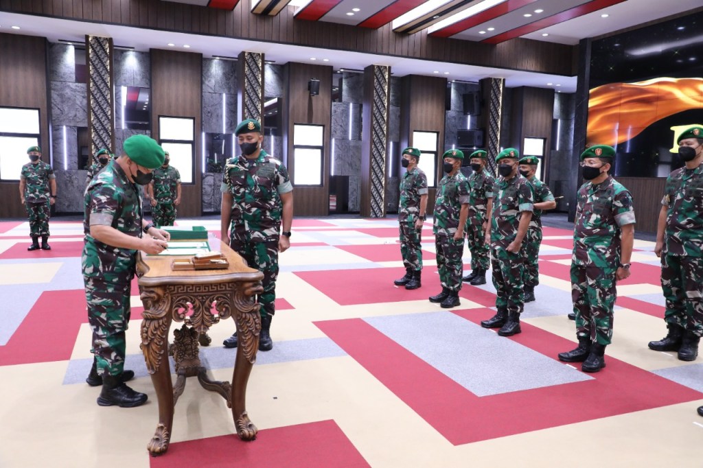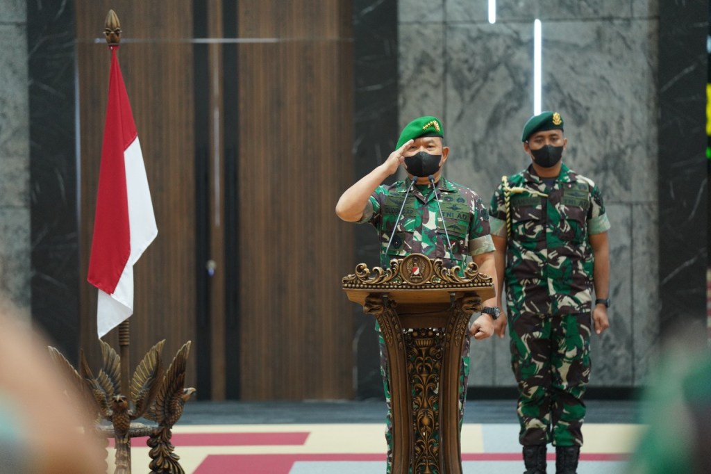 Demikian disampaikan Kasad dalam sambutannya usai memimpin serah terima jabatan (Sertijab) Pangdam I/BB dari Mayjen TNI Hassanudin, S.I.P., M.M., kepada Mayjen TNI Achmad Daniel Chardin, S.E., M.Si., Aspers Kasad dari Mayjen TNI Wawan Ruswandi, S.I.P., M.Si., kepada Brigjen TNI Darmono Susastro. S.I.P., Kapusziad dari Mayjen TNI Mohammad Munib, S.I.P., kepada Brigjen TNI Aby Ismawan S.E., M.Si., Dirajenad dari Brigjen TNI Teguh Bangun Martoto, S.Sos., M.H., kepada Brigjen TNI Faisal Ahmadi, S.I.P., M.M., Kadisjasad dari Brigjen TNI Khairul A. Mandailing, S.H., M.Tr.(Han)., kepada Kolonel Inf Aminudin, S.I.P., dan Kadispsiad dari Brigjen TNI I Made Riawan, S.Psi., M.I.P., kepada Brigjen TNI Drs. R. Tagar Pujasambada, M.Psi., bertempat di Mabesad, Jakarta, Senin (7/3/2022).