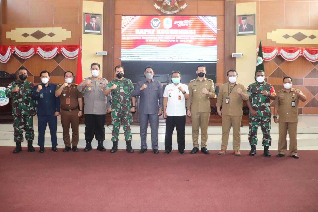 Anggota Satgas Pamtas RI-Malaysia Yonif 144/JY bersinergi dengan Polri, Kodim 1206/Psb, Forkopimda,dan instansi pemerintah dalam rangka mengahadiri Rapat Monitoring implementasi kebijakan pertahanan negara di Aula DPRD Kecamatan putusibau Utara kabupaten Kapuas Hulu Kalbar.
