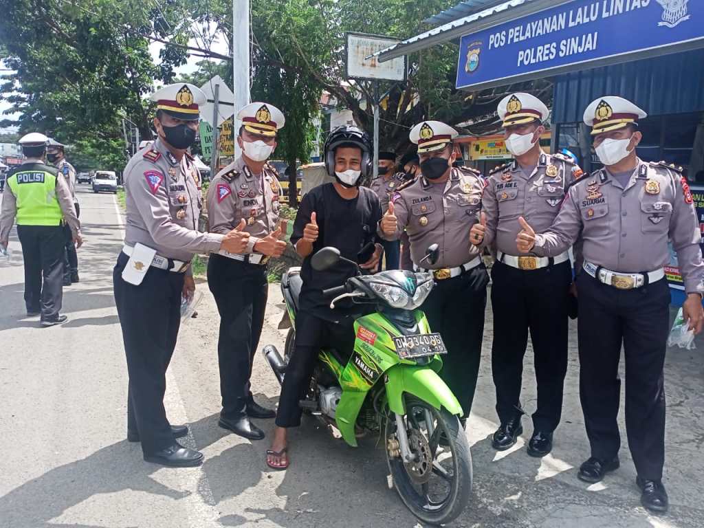 Kasat Lantas Polres Sinjai Akp Muh. Idris, S.Sos mengatakan bahwa pembagian masker, jaket dan helm dari Lalu lintas tak lain adalah sebagai bentuk apresiasi untuk masyarakat yang telah tertib lalu lintas.