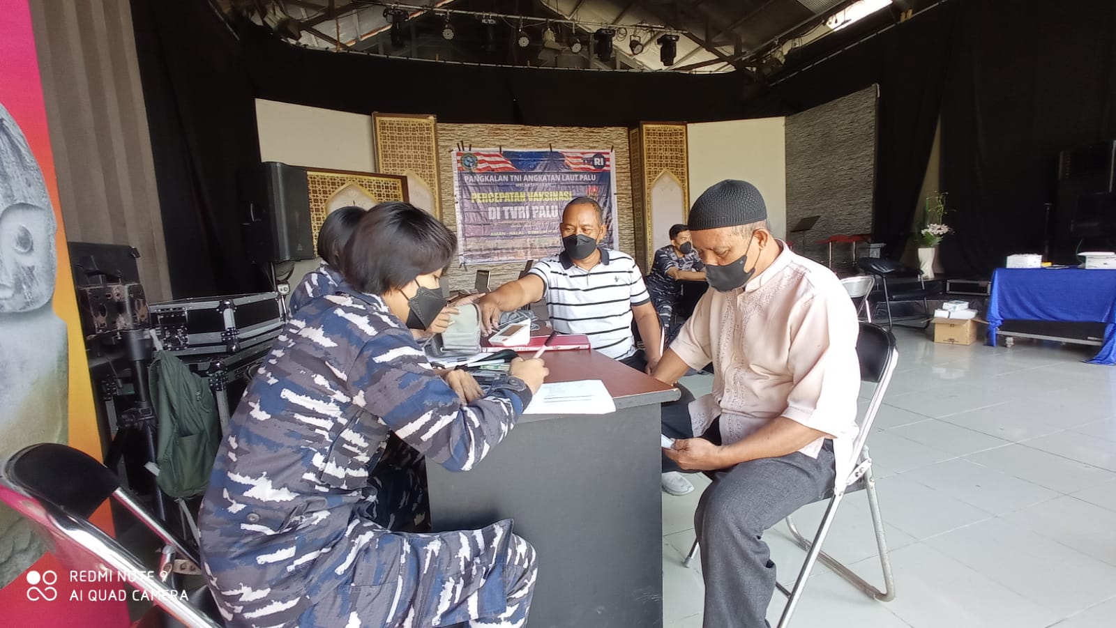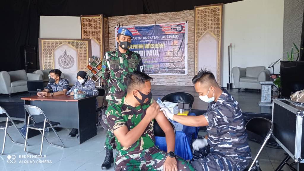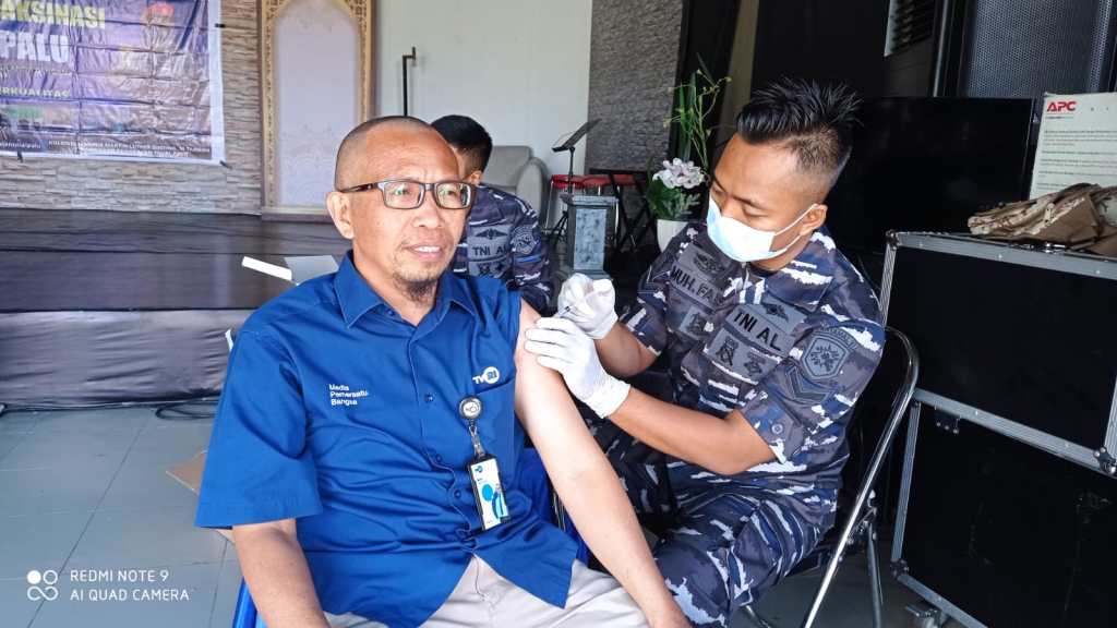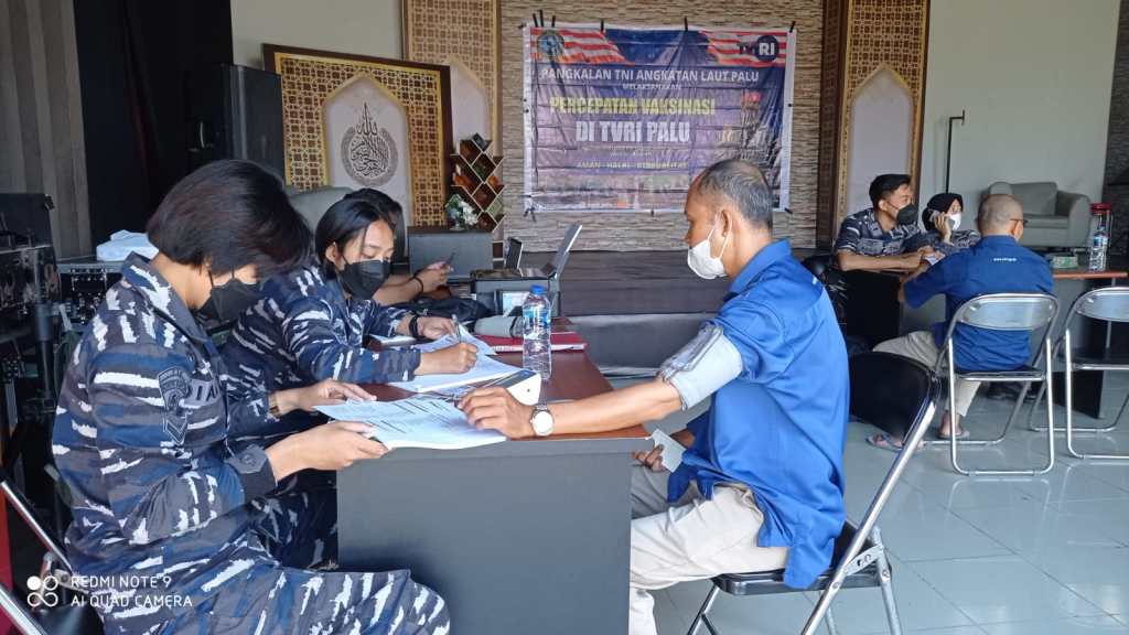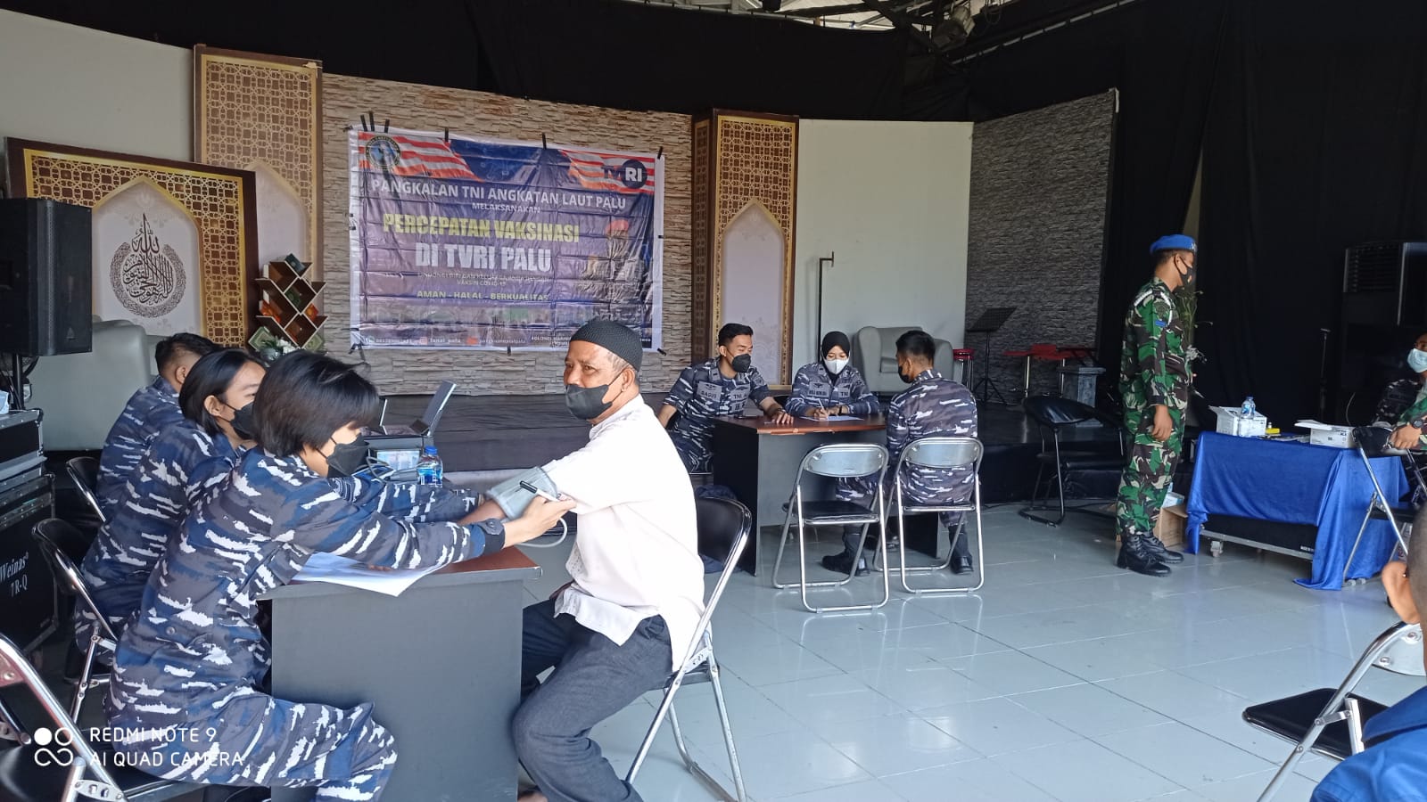Serbuan Vaksin oleh Pangkalan TNI AL Palu di Kantor TVRI Sulteng yang berlangsung sekitar lima jam hingga pukul 11.Wita menerima 45 orang pendaftar teregiatrasi dan berhasil memberikan vaksin kepada 44 orang serta menunda 1 orang dengan alasan klinis.