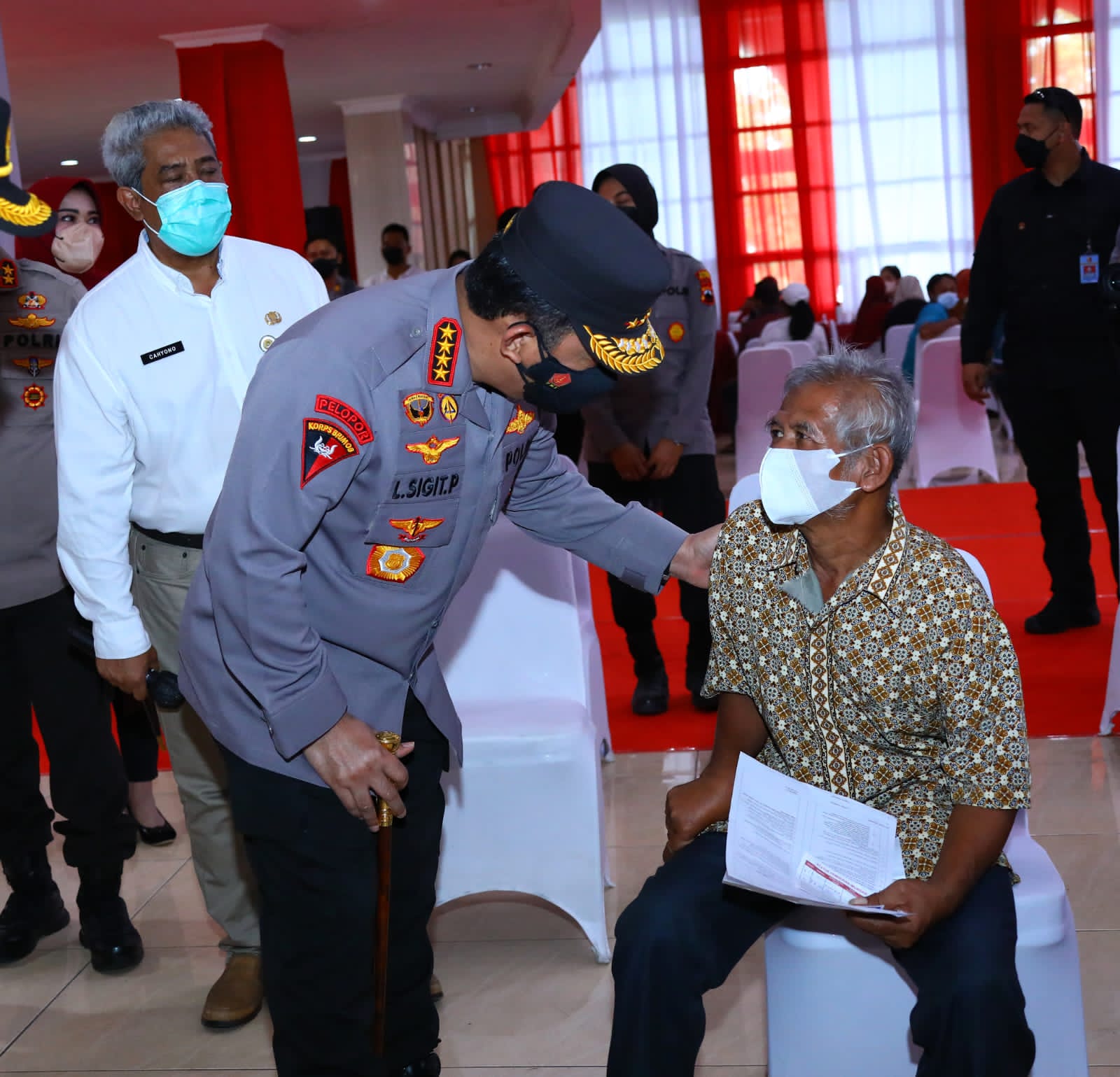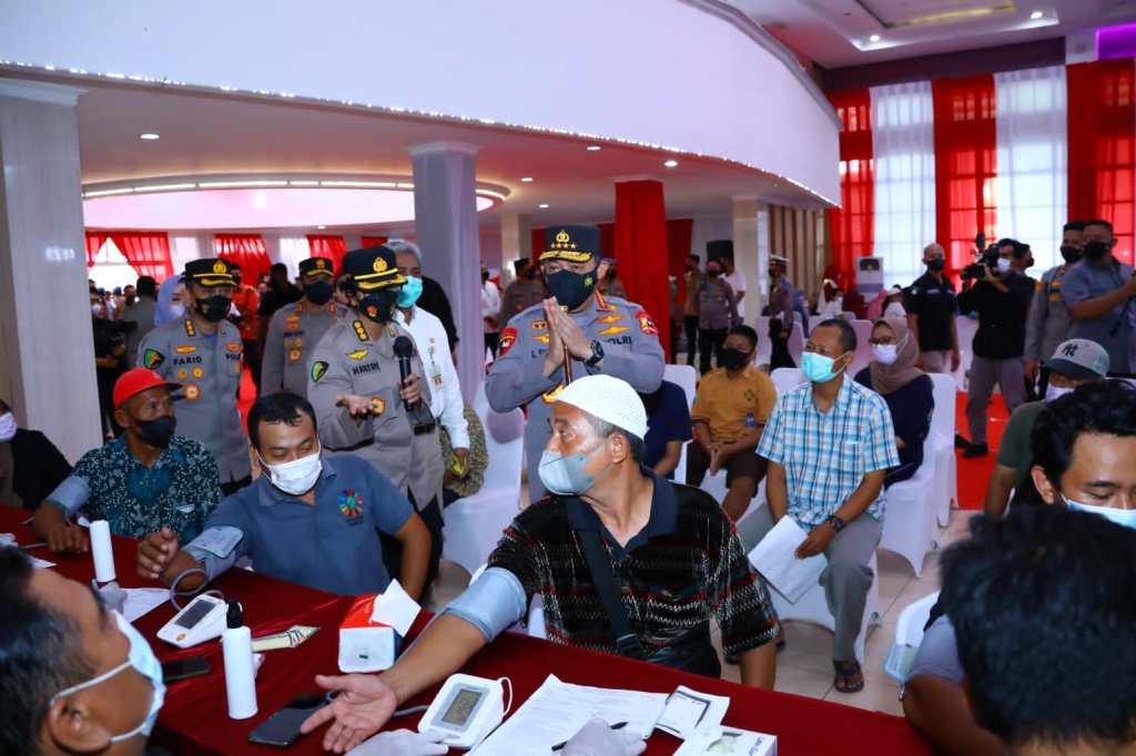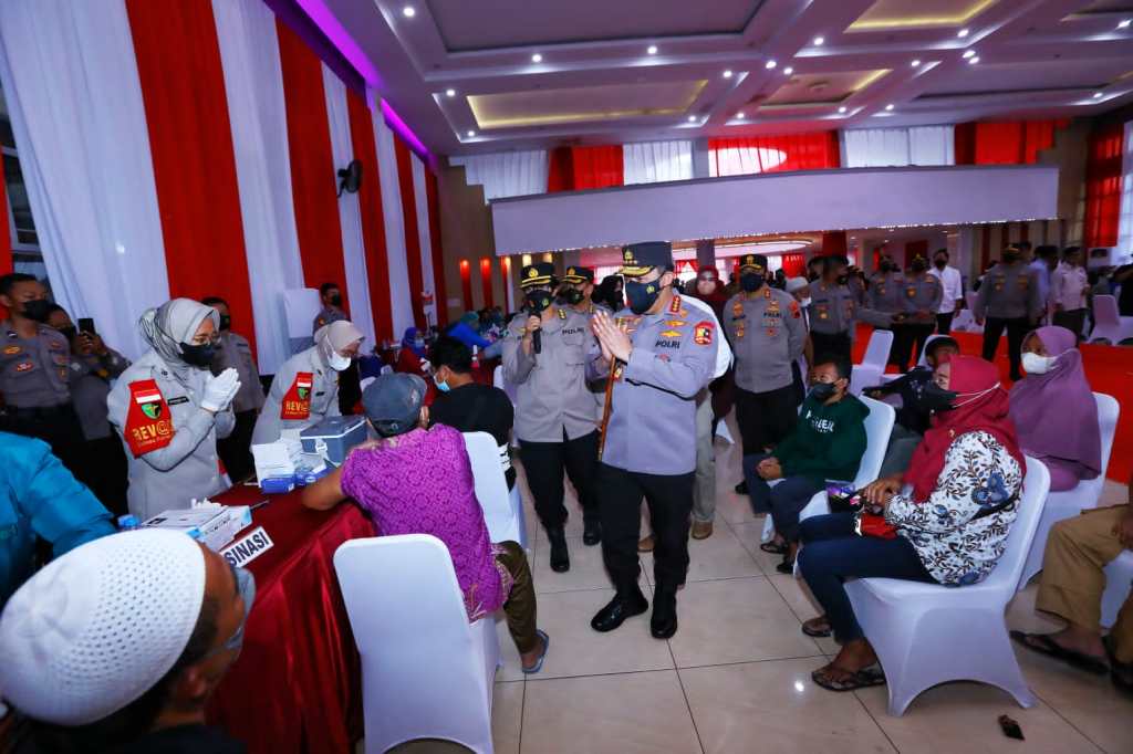 Jawa Tengah – Kapolri Jenderal Listyo Sigit Prabowo meninjau akselerasi percepatan vaksinasi di 5.703 titik di 34 Provinsi Indonesia. Dalam kegiatan kali ini, Kapolri hadir secara langsung di Gedung Grand Haji Delanggu, Kabupaten Klaten, Jawa Tengah (Jateng), Sabtu (12/3/2022).