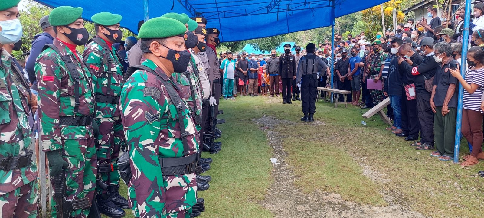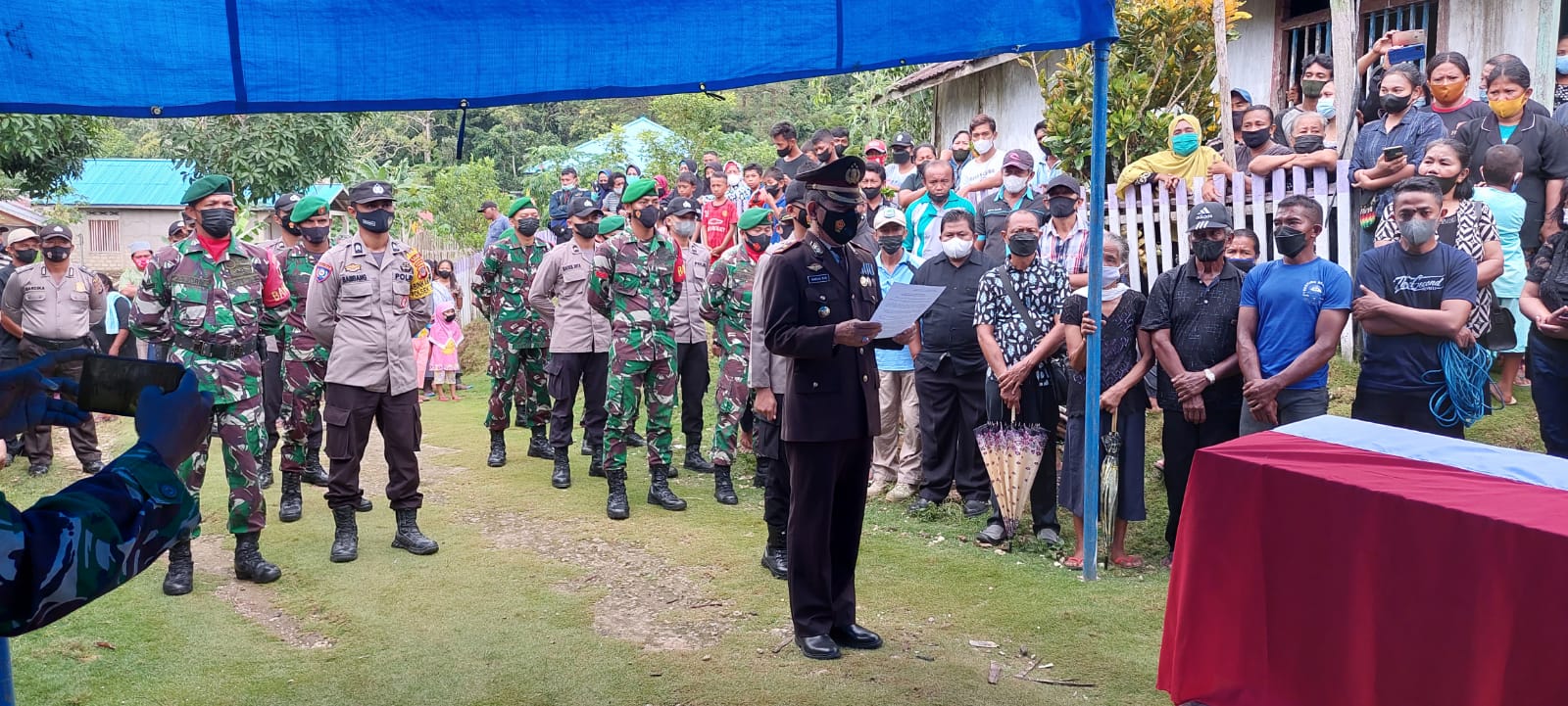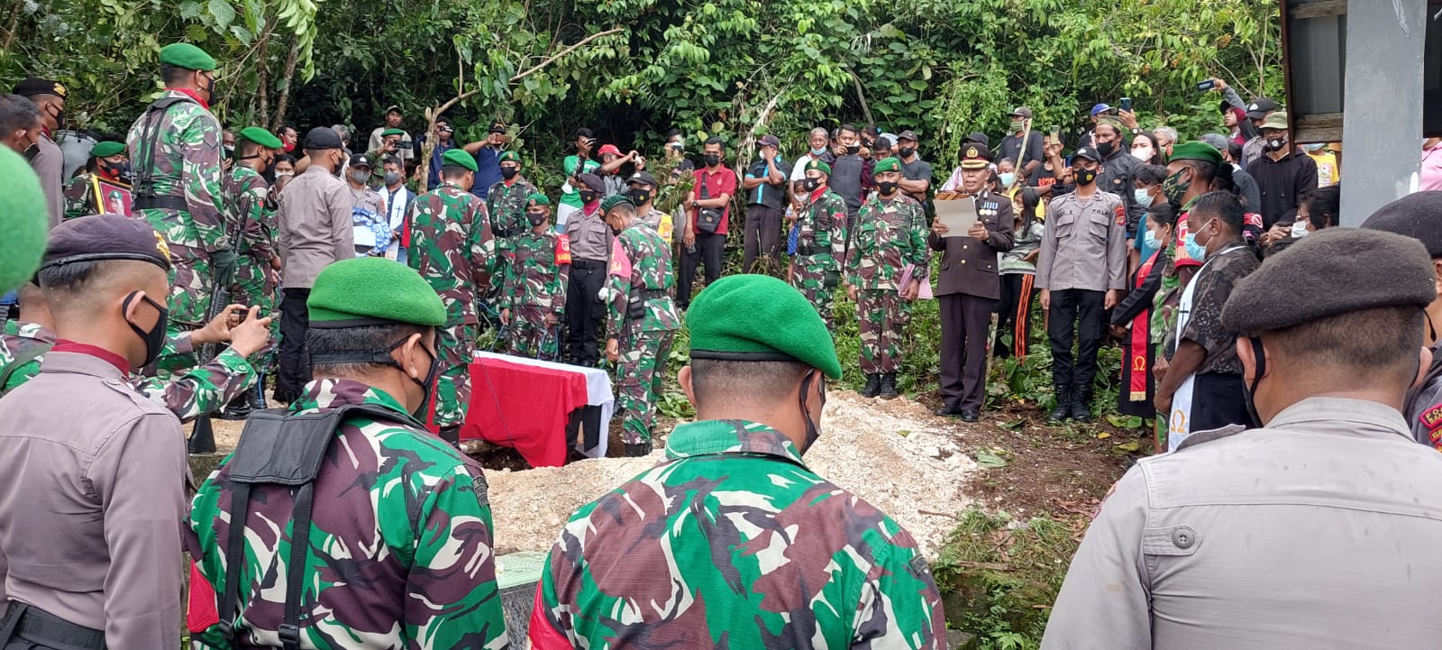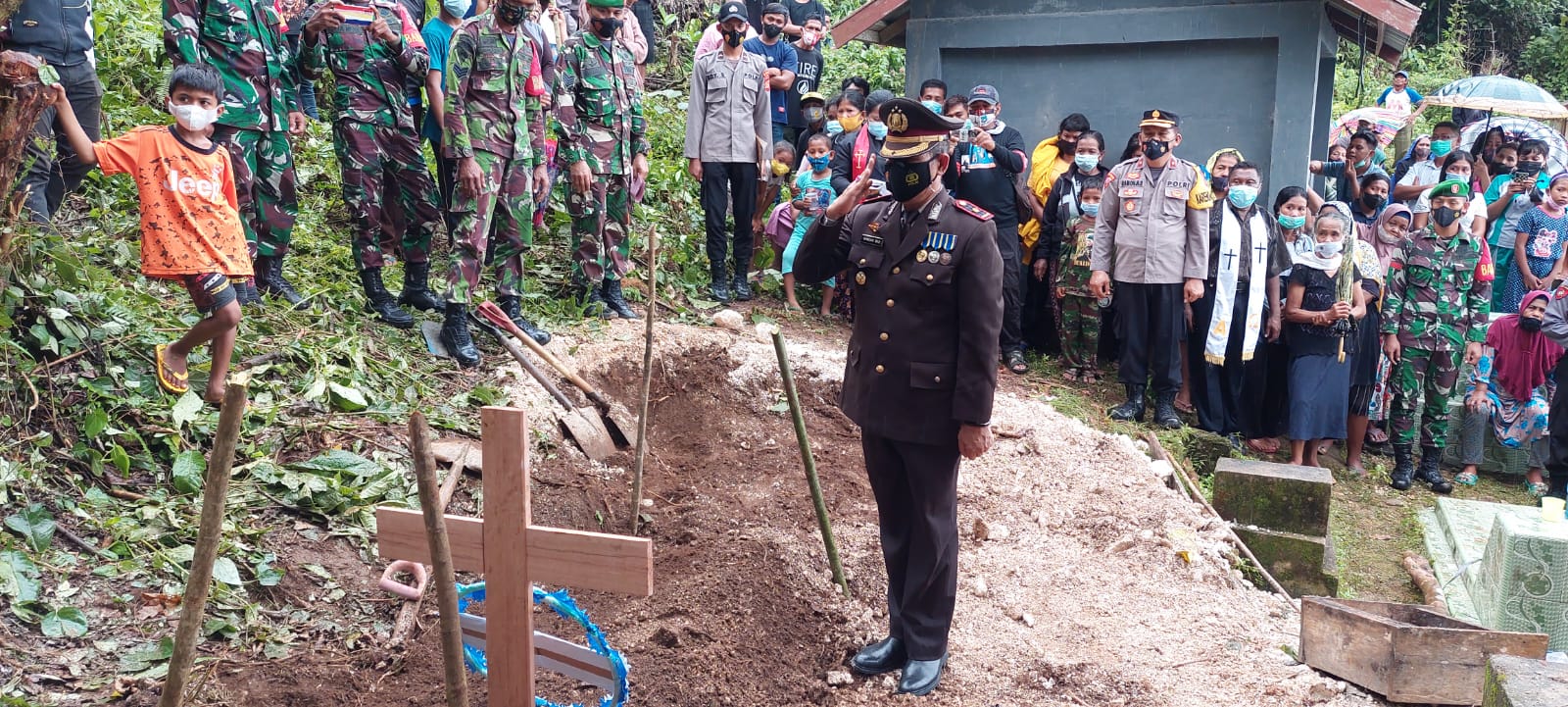 Waka Polres Bangkep Kompol Hamdan, S.Kom., M.Si didampingi Kabag Ops Kompol Ramon H. Datunsolang, S.Pd menghadiri prosesi pemakaman anggota Kodim 1802/Sorong/Dan XVII/Kasuari atas nama Sertu Yoman Buabangga. Jumat (11/03/2022).