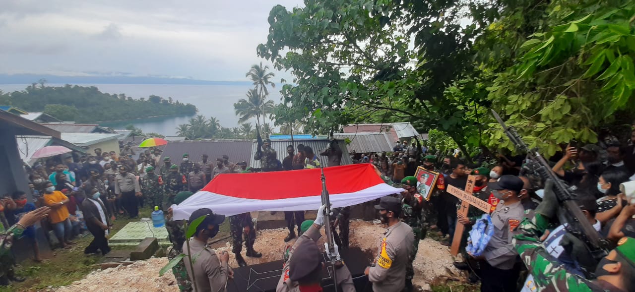 Almarhum dimakamkan dengan prosesi militer yang dihadiri Pabung 1308/LB yang diwakili oleh Serka Jamal Jahasa, Pjs. Danramil 1308-11/Liang Serma Hanafi M., serta anggota TNI Polri, juga hadir Kades Tolulos Bpk. Yekonias Malonta, S.Pd, Pendeta Resti Losama, S.Th., serta keluarga almarhum.