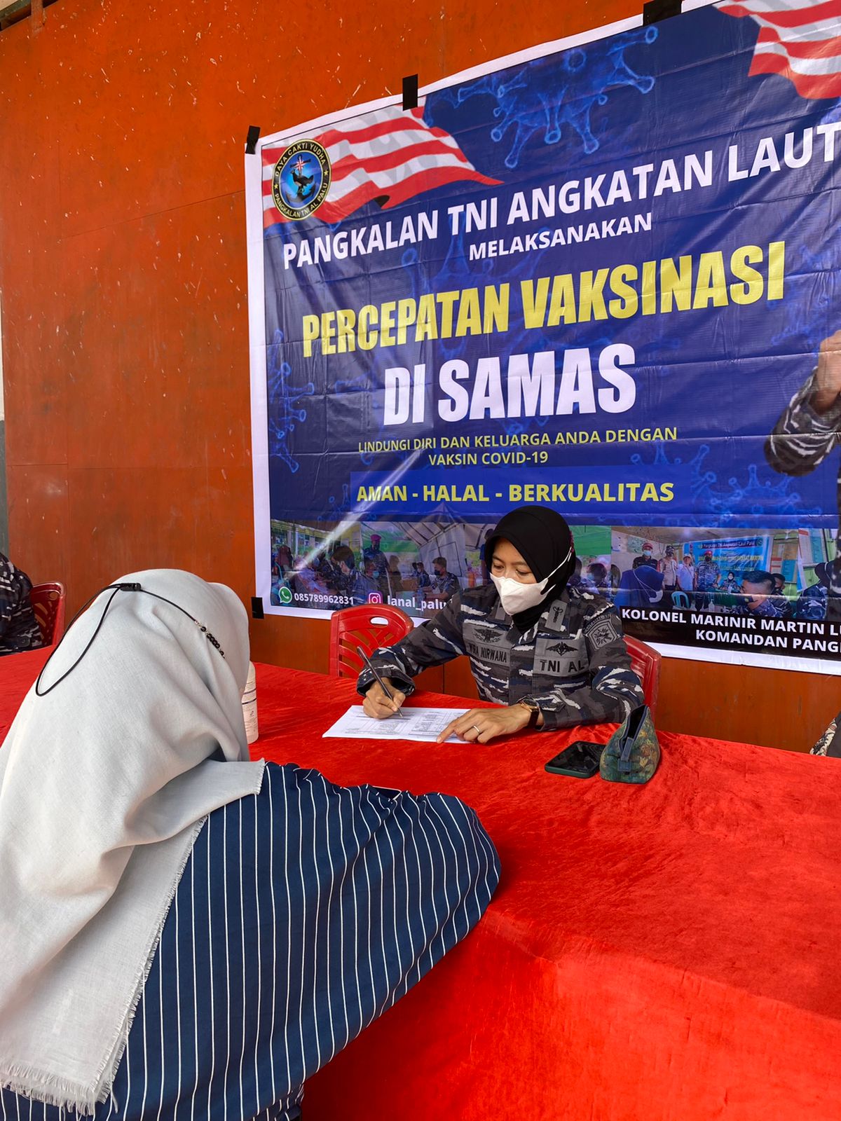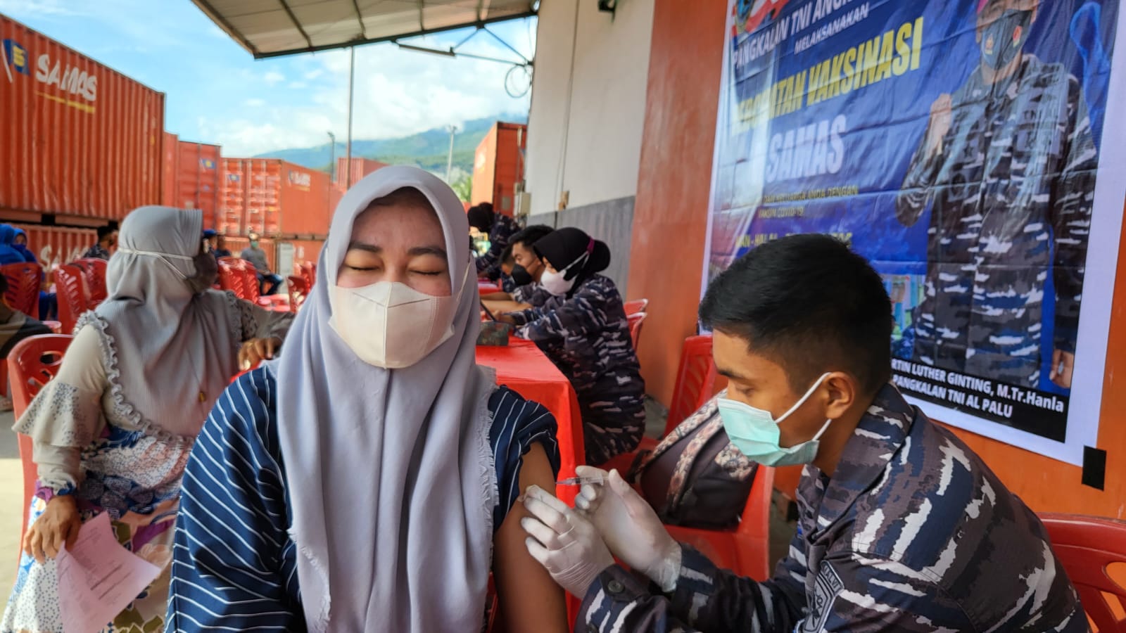 Palaksa Lanal Palu mewakili Danlanal Palu saat meninjau sekaligus mendampingi Tim Vaksinator dari Balai Kesehatan (BK) Lanal Palu pada pelaksanaan Serbuan Vaksin di PT. Samas menyampaikan, "Pelaksanaan Vaksin kali ini merupakan pelayanan bagi karyawan PT. Samas dan Masyarakat Maritim sekitar PT. Samas untuk mendapatkan Vaksinasi disela keterbatasan waktu dan kesempatan karena kesibukan bekerja.