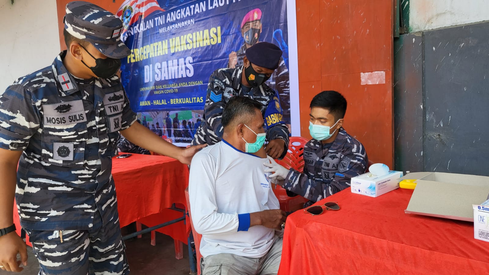 Salah satu bentuk terobosan yang dilaksanakan Pangkalan TNI AL (Lanal) Palu dalam mendukung percepatan Vaksinasi Covid-19 dengan membukan pelayanan dengan mengambil lokasi serbuan di area lingkungan Perusahaan dengan target karyawan agar bisa mendapatkan vaksinasi di sela kesibukan pekerjaan.