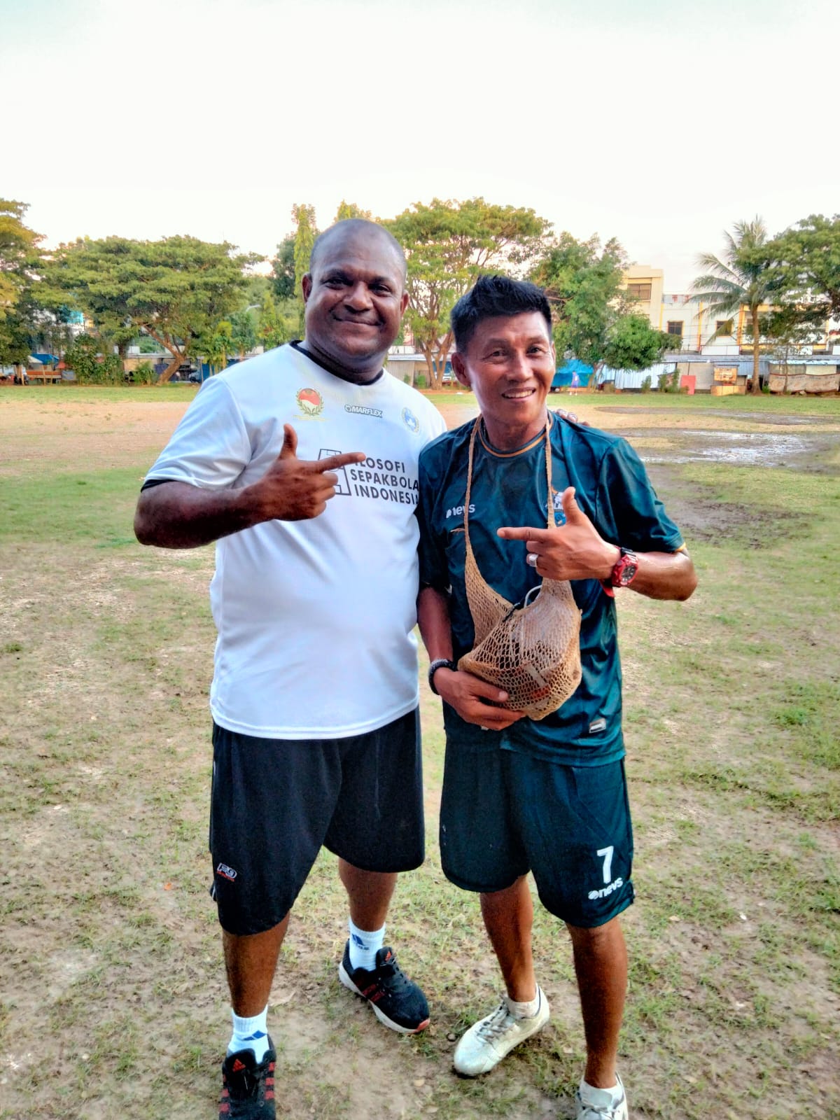 Hyeronimus Lisias Yokhu (40) tahun berasal dari Papua akhirnya bertemu dengan pemain Sepak Bola idolanya Marwal Iskandar Sang Legendaris (Foto-red)