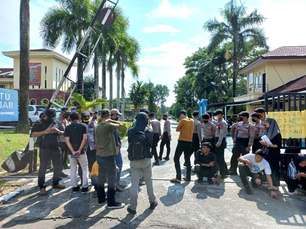 LSM LPMT SULTRA melakukan aksi unjuk rasa di Mapolda Sultra terkait dugaan penggunaan Jalan Umum yang dilakukan Oleh Asosiasi Penambang Batu (ASPENTU) di Desa Matandahi dan Desa Poni-Poniki Kec.Motui Kab. Konawe Utara. (12/03/2022)
