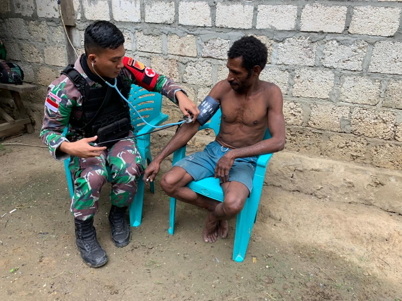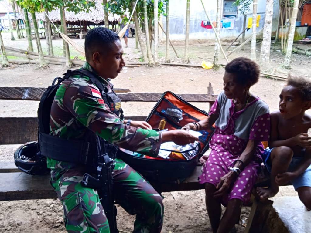 Prajurit TNI Satgas Pamtas RI-PNG Yonif 711/Rks semakin aktif melayani pengobatan kesehatan langsung ke rumah warga kampung Sawiyatami, Distrik Mannem, Kabupaten Keerom, Papua Kamis (17/03/2022).