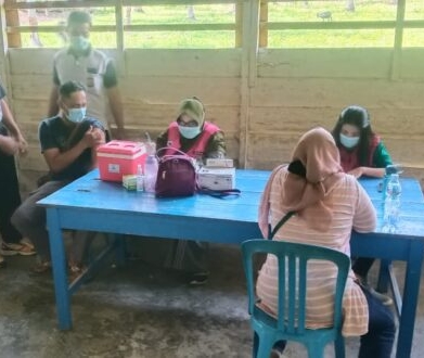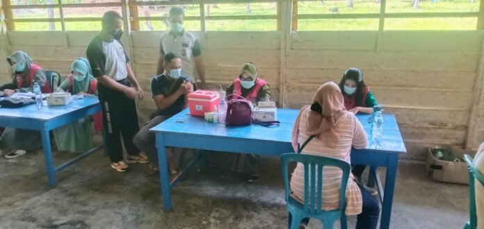 Puskesmas Ampana Tete bersama Polsek Ampana Tete gelar Vaksinasi bagi masyarakat umum bertempat di Kantor Desa Kajulangko, Kecamatan Ampana Tete, Kabupaten Touna, Jum’at tadi (Foto-red)