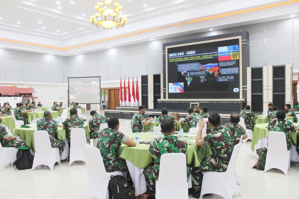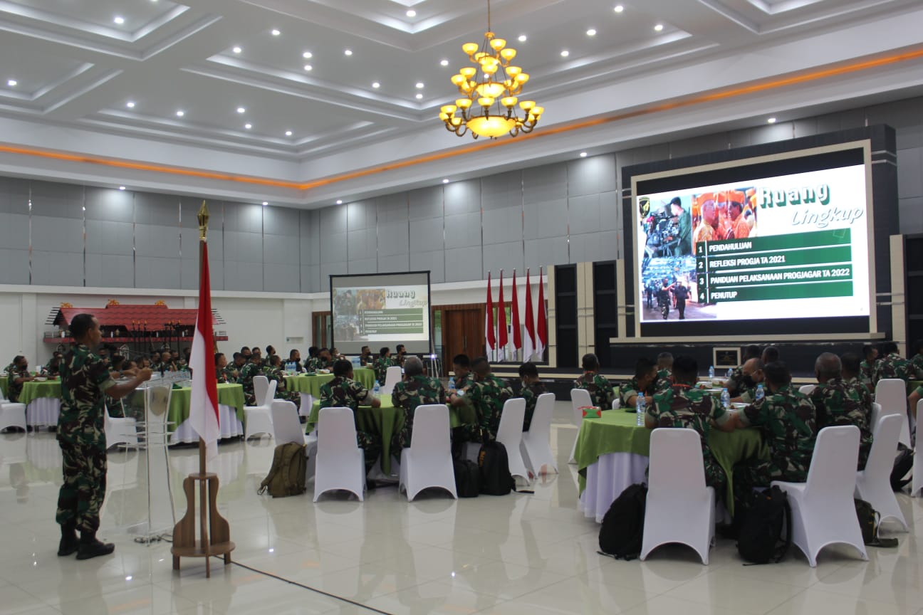 “Selain itu, untuk menyampaikan kebijakan Pimpinan serta menyamakan visi dan persepsi dalam melaksanakan Program Kerja TA 2022 bagi seluruh pejabat Intelijen agar sesuai dengan arah dan kebijakan Komando Atas dalam rangka meningkatkan dan mengoptimalkan kinerja aparat Intelijen di jajaran Kodam XII/Tpr,” katanya.