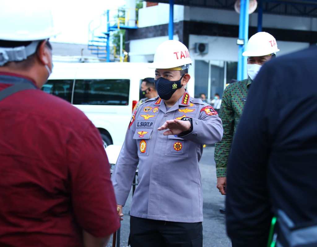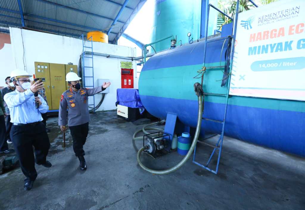 Kapolri Jenderal Polisi Listyo Sigit Prabowo meninjau langsung pabrik minyak goreng PT Sawit Tunggal Arta Raya (STAR) Bali, di Pelabuhan Benoa, Kota Denpasar, Bali, Jumat (18/3/2022).