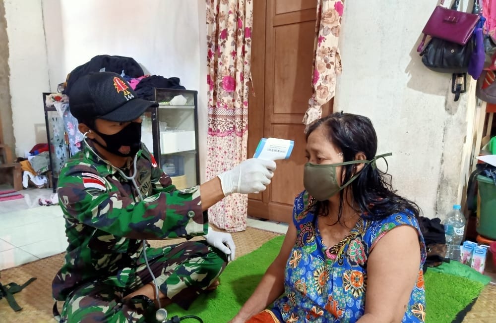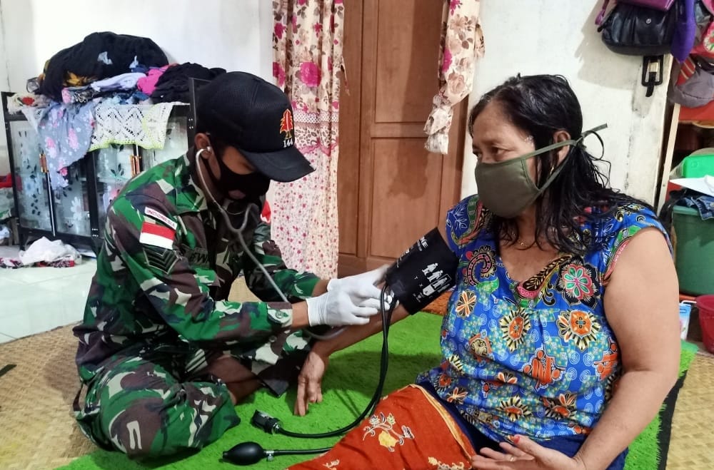 Serka Siep Epwal beserta dua rekannya”, Kami melaksanakan bantuan pengobatan gratis dengan menyambangi rumah ke rumah, laksanakan tensi dan pemberian obat harapannya warga yang kami obati bisa di sembuhkan dan bisa beraktivitas kembali”, imbuhnya.