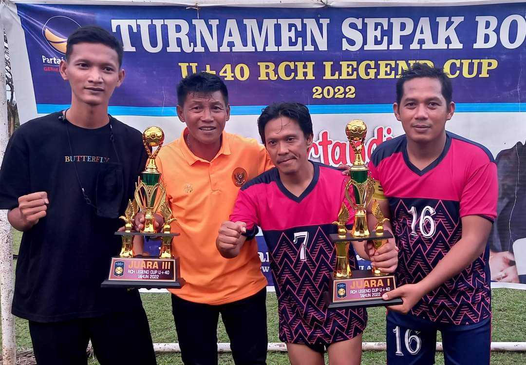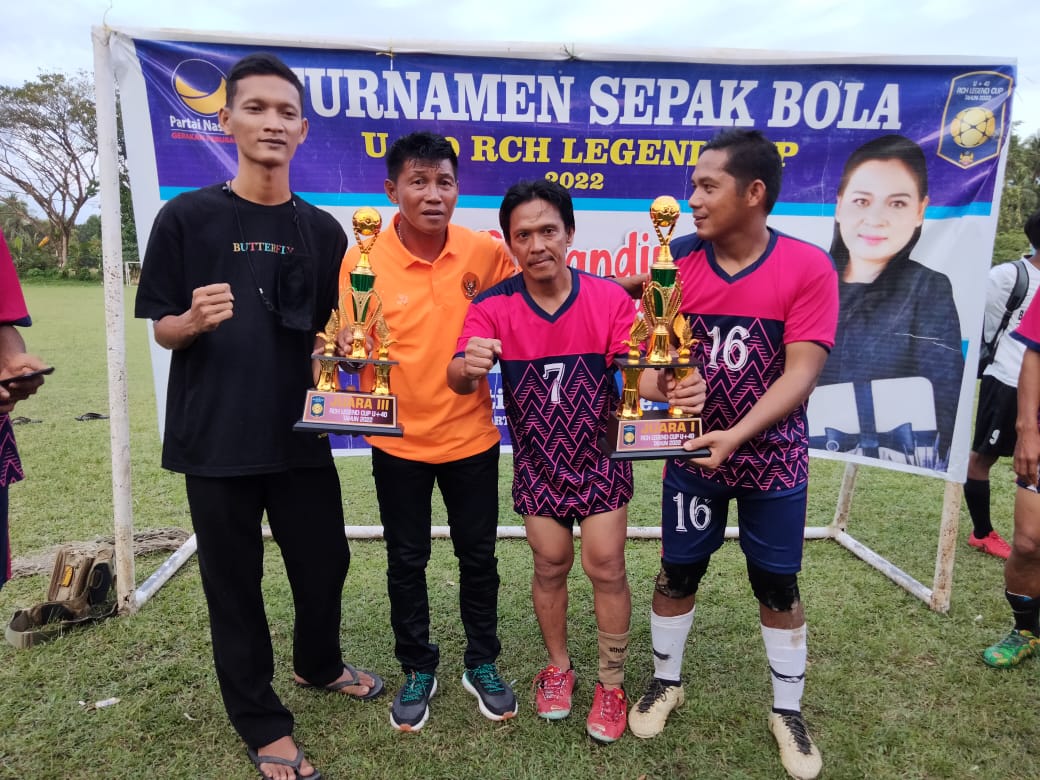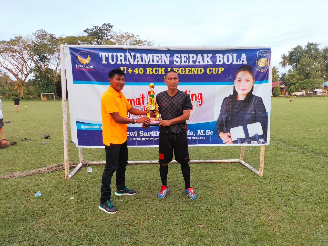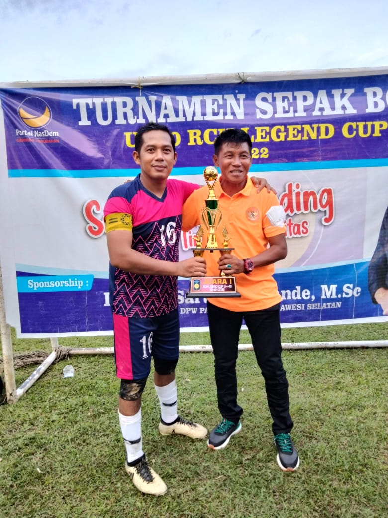 Penyerahan piala kepada pemenang oleh Marwal Iskandar sebagai ketua APSSI sul sel dalam acara puncak kegiatan turnamen sepak bola U+40 RCH legend tahun 2022.